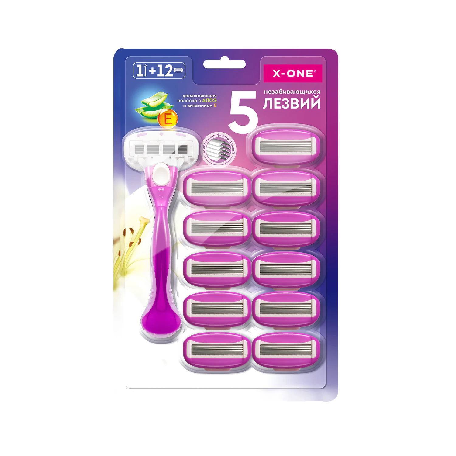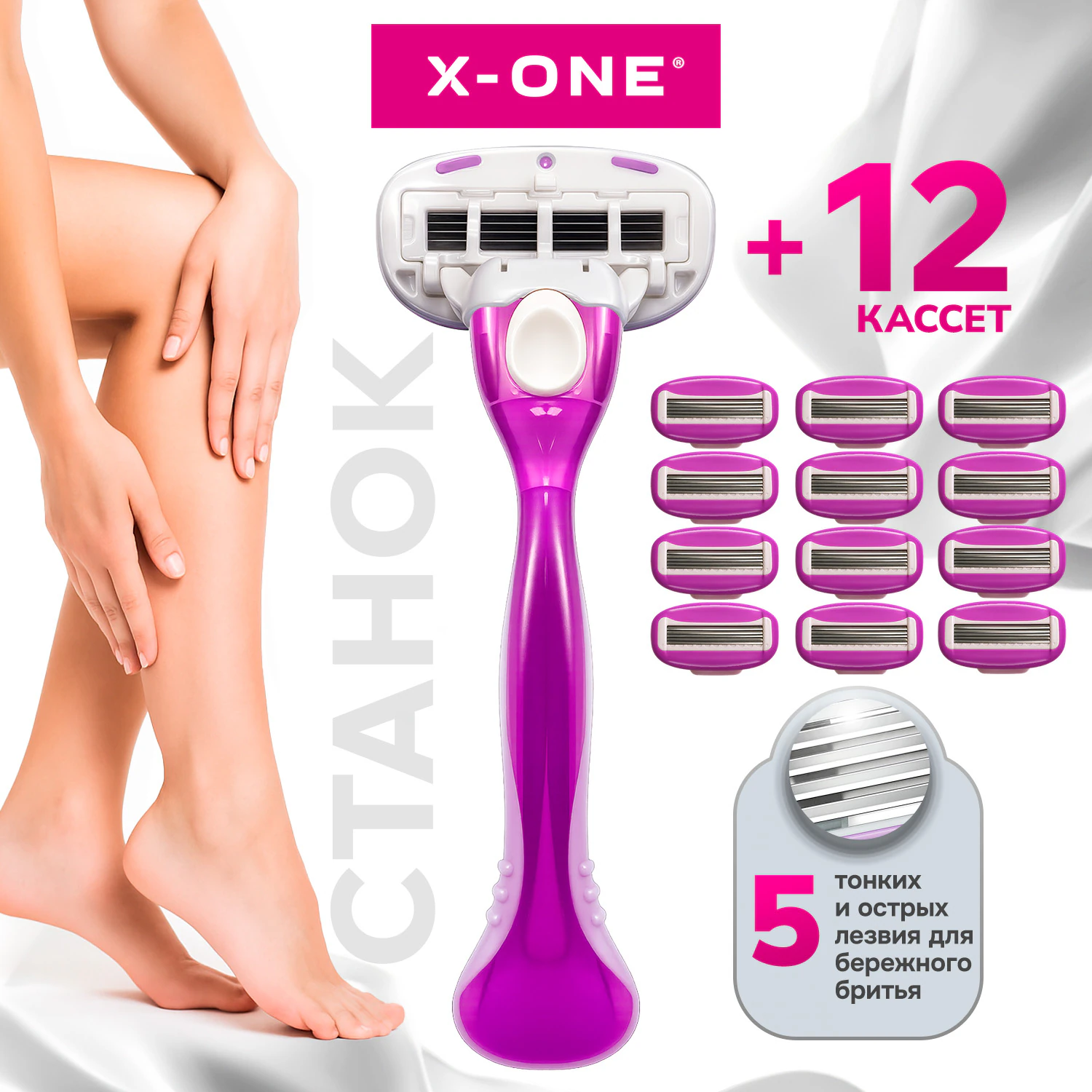 Бритва X-ONE с 12 сменными кассетами для женщин всего за одно движение обеспечивает невероятно чистое бритьё, шелковистость и гладкость кожи.