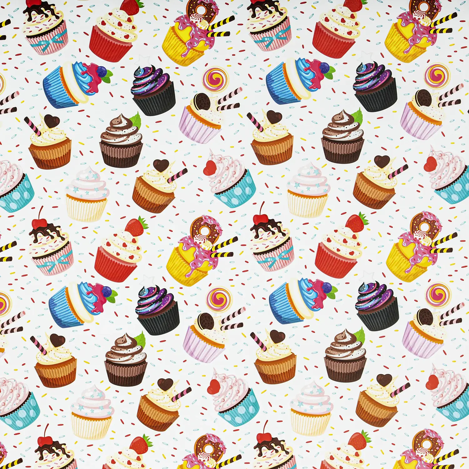 Изготовлена из мелованной бумаги и представлена производителем в 10 универсальных дизайнах с изображением сладостей. Бумага плотностью 105 г/м2 упакована в рулоны длиной 100 см и шириной 70 см (± 5%).