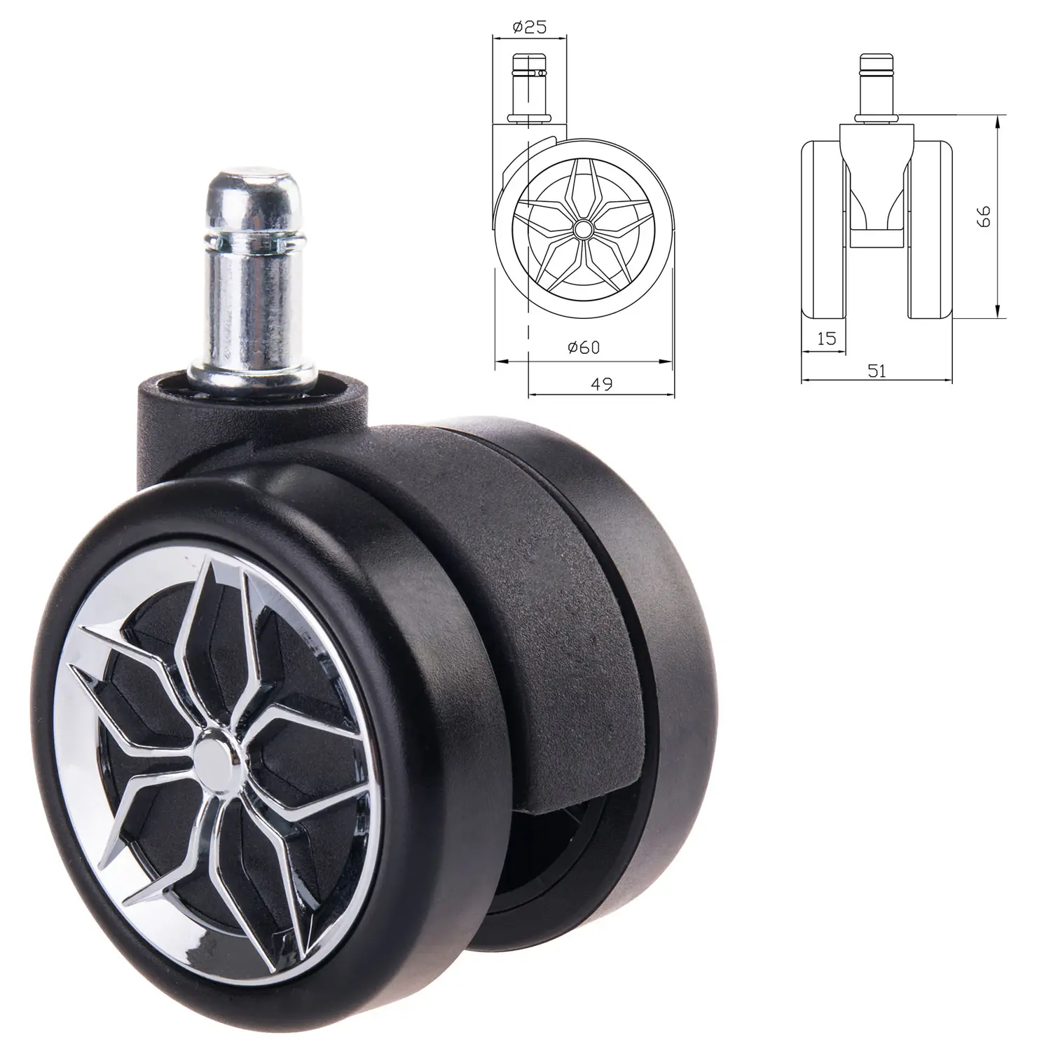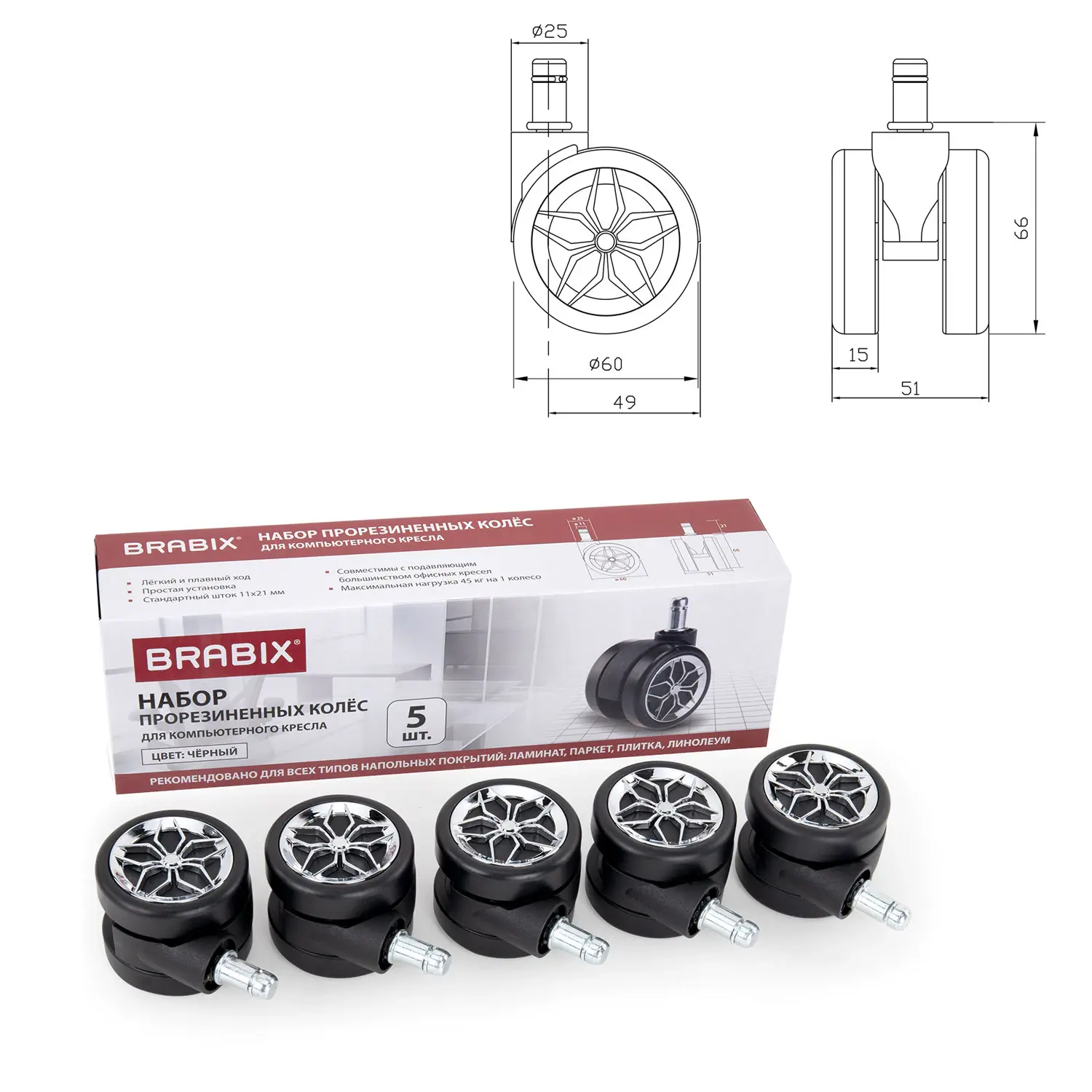 Комплект роликов для компьютерных кресел. Стандартный размер штока - 11х22 мм.
