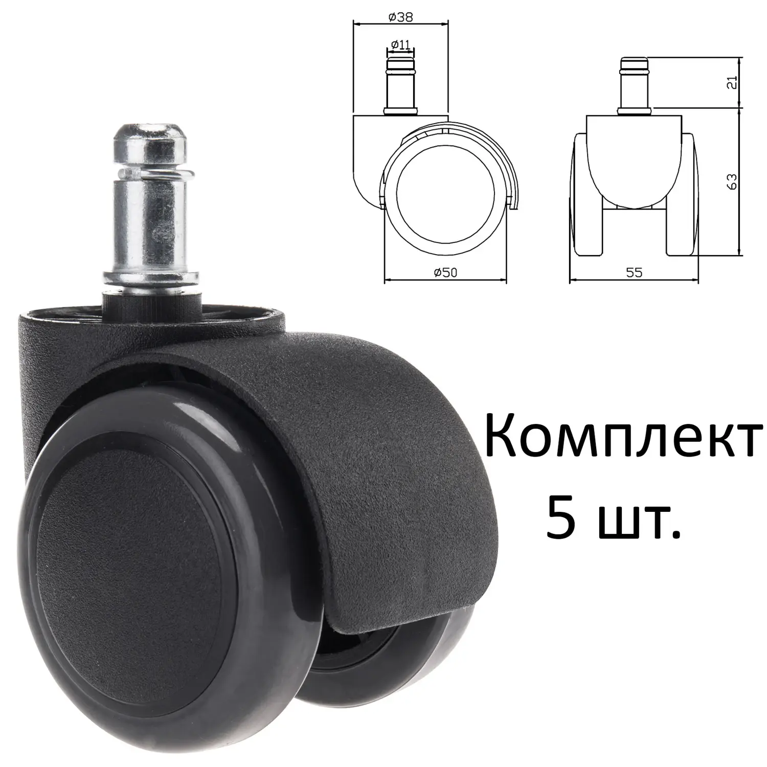 Комплект роликов для офисных кресел. Стандартный размер штока - 11х21 мм.