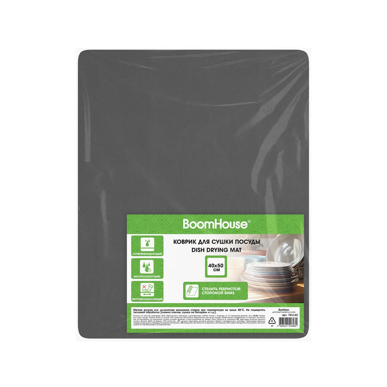 Нано-коврик для сушки посуды BOOMHOUSE – это современное гигиеничное решение для кухни, объединяющее в себе высокую функциональность и инновационные материалы.