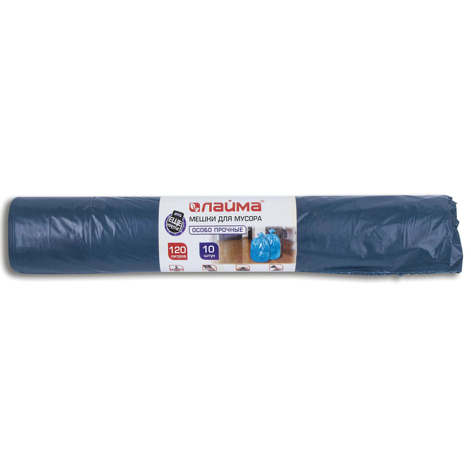 Изготовлены из полиэтилена высокого давления (ПВД) плотностью 40 микрон и имеют объем 120 литров. Размер мешка – 70х110 см (±5%). Поставляются в рулоне по 10 штук. Преимуществами данных мешков для мусора являются: устойчивость к разрыву, высокая прочность, большой объем и грузоподъемность. Цвет изделия может быть представлен в разных оттенках синего. Внешний вид изделия может отличаться от иллюстраций, представленных на сайте.