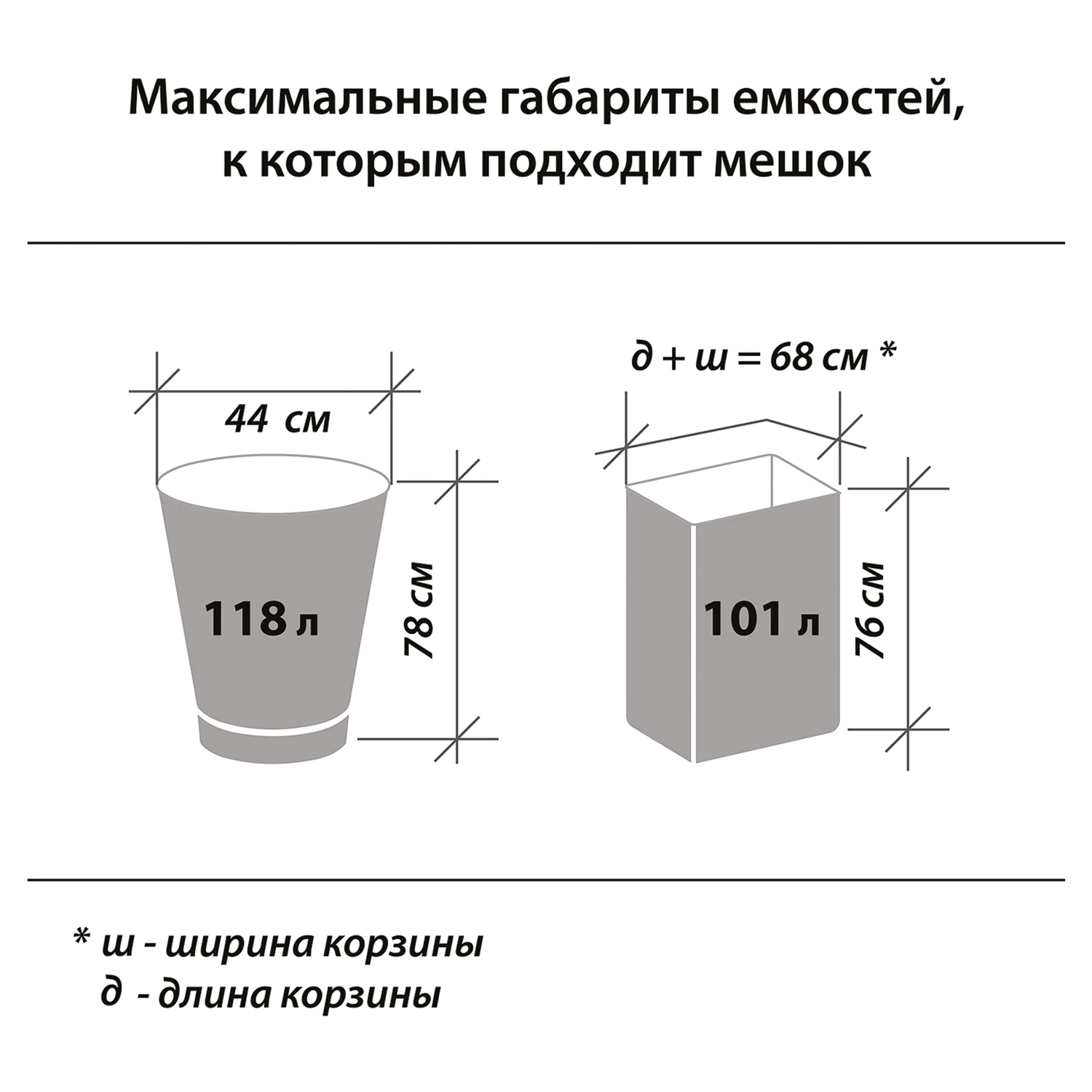 Изготовлены из полиэтилена низкого давления (ПНД) плотностью 17 микрон и имеют объем 120 литров. Размер мешка - 70х110 см (±5%). Поставляются в рулоне по 10 штук. Преимуществами данных мешков для мусора являются: биоразлагаемость материала, большой объем и высокая грузоподъемность. Абсолютно безопасны для окружающей среды. Биоразлагаемые мешки для мусора созданы из материалов, которые после использования разлагаются за 1,5-2 года под действием кислорода, воды и света и превращаются в органические соединения. Поэтому данный вид мешков пользуется всё большим спросом. Биоразлагаемые мешки полностью аналогичны обычным мешкам для мусора по прочности и внешнему виду.
