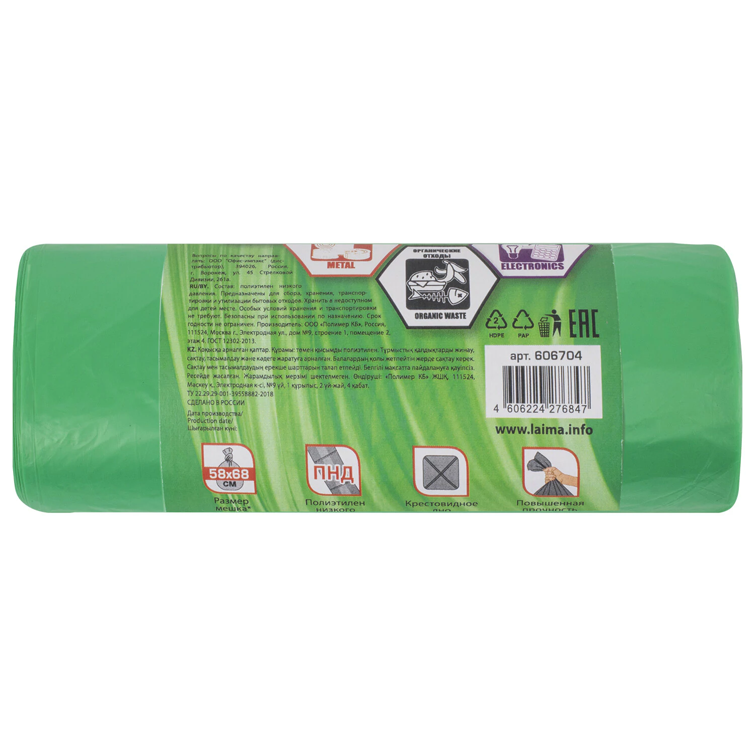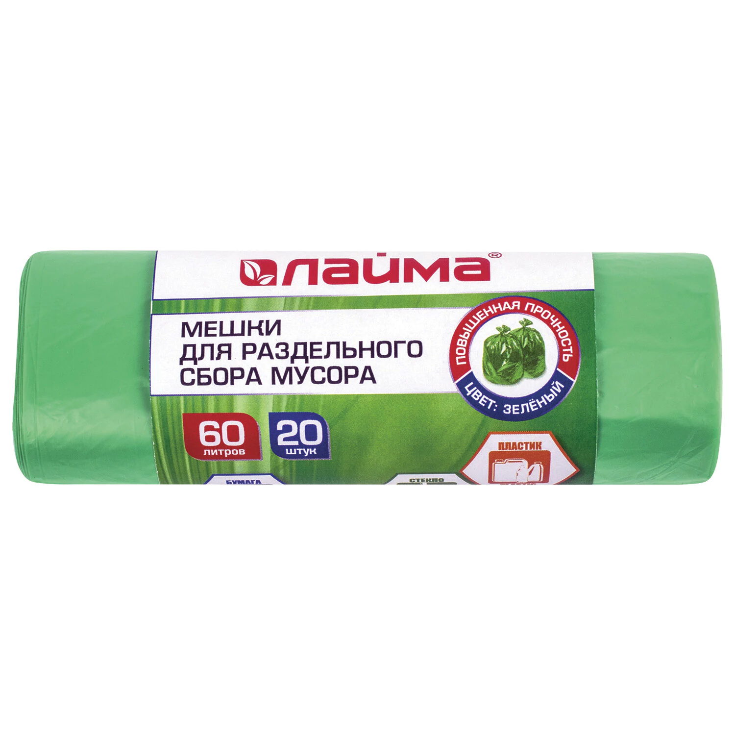 Широко используются в офисах, дома, в строительной, медицинской сфере, супермаркетах или на улице, в специальных урнах для мусора. Изготовлены из полиэтилена низкого давления (ПНД) плотностью 10 микрон и имеют объем 60 литров. Поставляются в рулоне по 20 штук. Размер мешка - 58х68 см (±5%). Преимуществами данных мешков для мусора являются большой объем и высокая грузоподъемность.