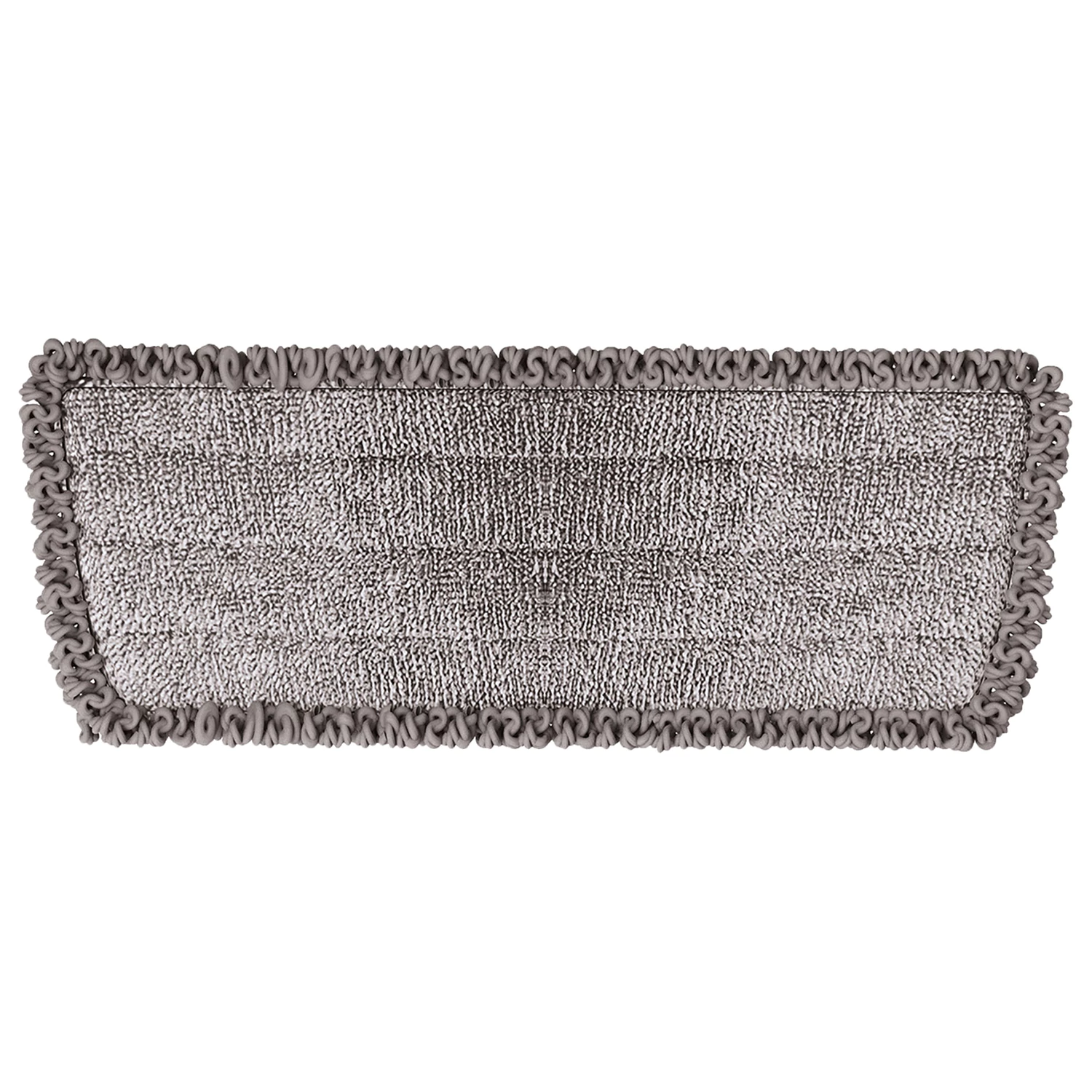 Губка между верхним и нижним слоями надежно впитывает и удерживает влагу, забирая в структуру ткани любые загрязнения, и не оставляет разводов. Внешний слой со скрученными нитями очищает поверхность от мелкого мусора и пыли. Крученые петли работают как деликатный абразив и усиливают впитывающие свойства микрофибры. Объемные петли по краям эффективны при уборке волос и шерсти. Насадки трапециевидной формы имеют увеличенную поверхность и созданы специально для уборки в углах.