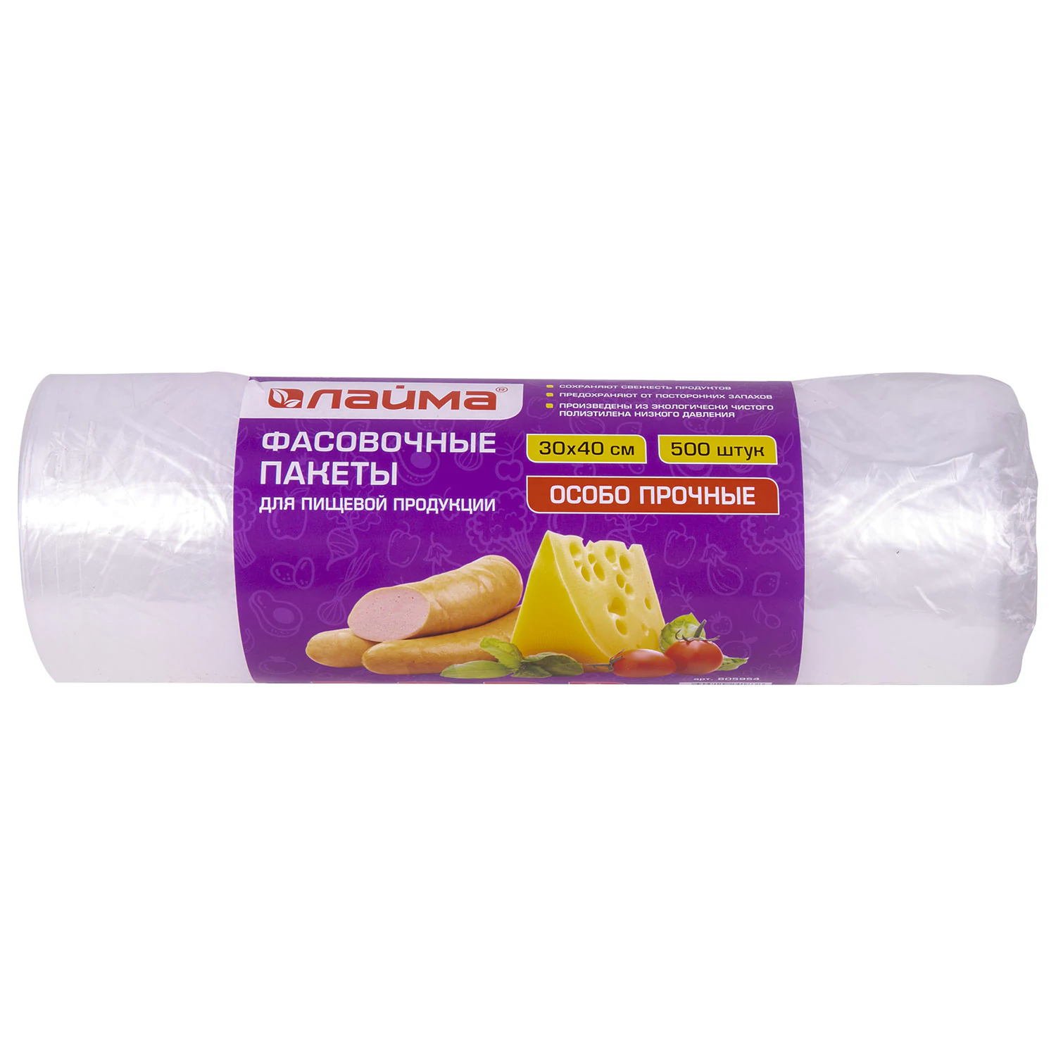 Особо прочные фасовочные пакеты LAIMA предназначены для упаковки различной продукции, в том числе пищевой. Отлично подходит для овощей, фруктов, зелени, различных круп, мяса и мясных изделий, чая, кофе и прочих пищевых продуктов.Обладают высокой эластичностью и прочностью, сохраняют свежесть продуктов, предохраняют содержимое от посторонних запахов. Прозрачные фасовочные пакеты плотностью 15 мкм в рулоне на 500 штук. Изготовлены из экологически чистого ПНД (полиэтилена низкого давления). Размер - 30х40 см.