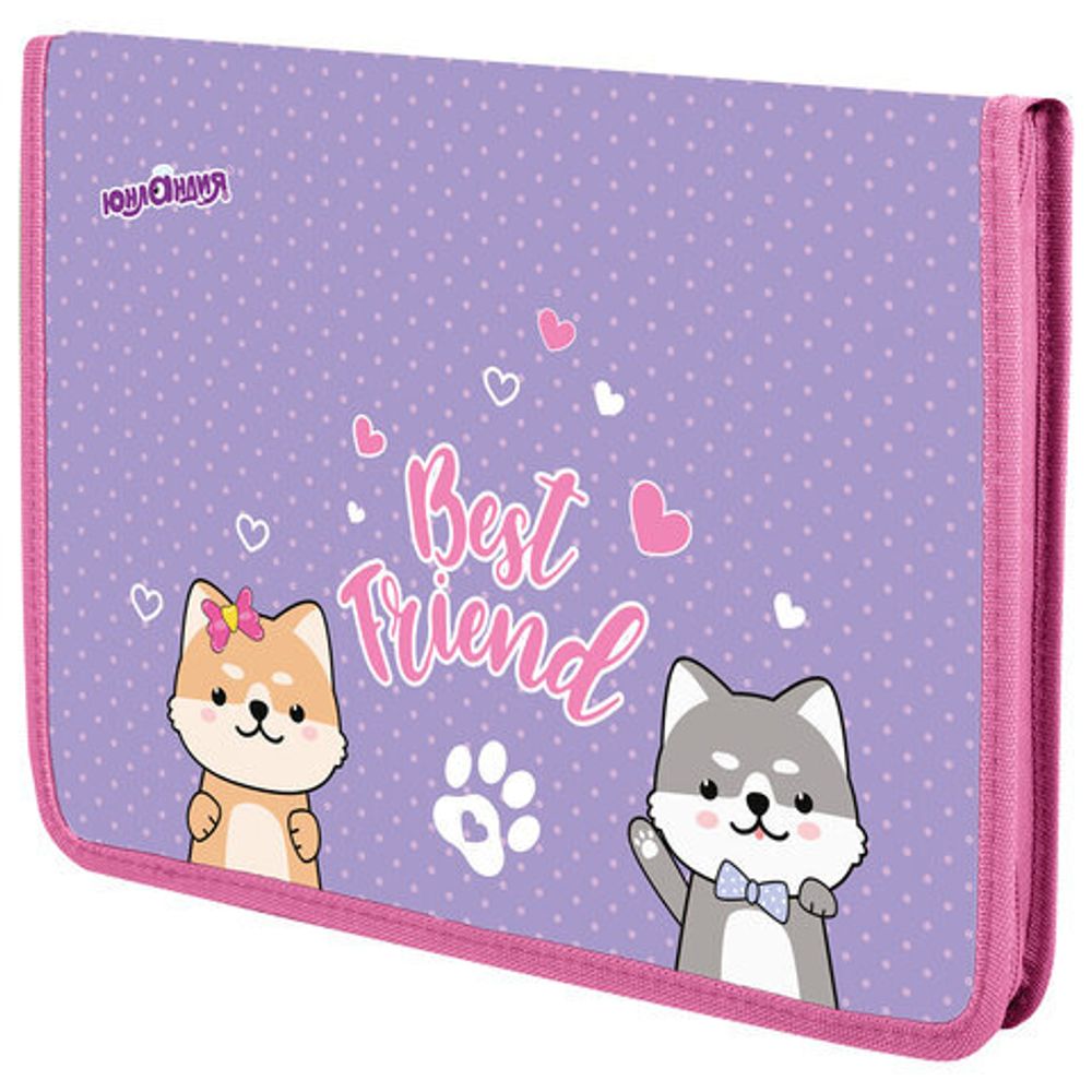 Папка для труда ЮНЛАНДИЯ "Best fellows" формата А4 предназначена для хранения и переноски канцелярских и творческих принадлежностей. Вместительный органайзер внутри позволит разместить все необходимые для уроков труда и занятия творчеством предметы.Папка на молнии выполнена из прочного пластика, что обеспечивает долговечность и надежность. Двухсторонняя яркая и красочная печать коллекционного дизайна. Внутри одно основное отделение и откидная планка с резинками-органайзером для канцелярии. Размер папки - 330х230 мм, ширина - 25 мм. Застежка-молния, расположенная с трех сторон папки, обеспечивает быстрый доступ к содержимому. Идеально подходит для транспортировки и хранения канцелярских принадлежностей, тетрадей, учебников и пособий формата А4.