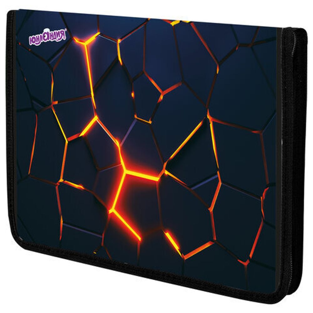 Папка для труда ЮНЛАНДИЯ "Volcano split" формата А4 предназначена для хранения и переноски канцелярских и творческих принадлежностей. Вместительный органайзер внутри позволит разместить все необходимые для уроков труда и занятия творчеством предметы.Папка на молнии выполнена из прочного пластика, что обеспечивает долговечность и надежность. Двухсторонняя яркая и красочная печать коллекционного дизайна. Внутри одно основное отделение и откидная планка с резинками-органайзером для канцелярии. Размер папки - 330х230 мм, ширина - 25 мм. Застежка-молния, расположенная с трех сторон папки, обеспечивает быстрый доступ к содержимому. Идеально подходит для транспортировки и хранения канцелярских принадлежностей, тетрадей, учебников и пособий формата А4.