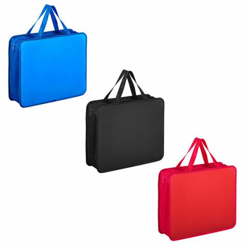 Папка оснащена удобной застёжкой-молнией сверху. Прочные ручки из тесьмы обеспечивают комфортную переноску даже при большой нагрузке.