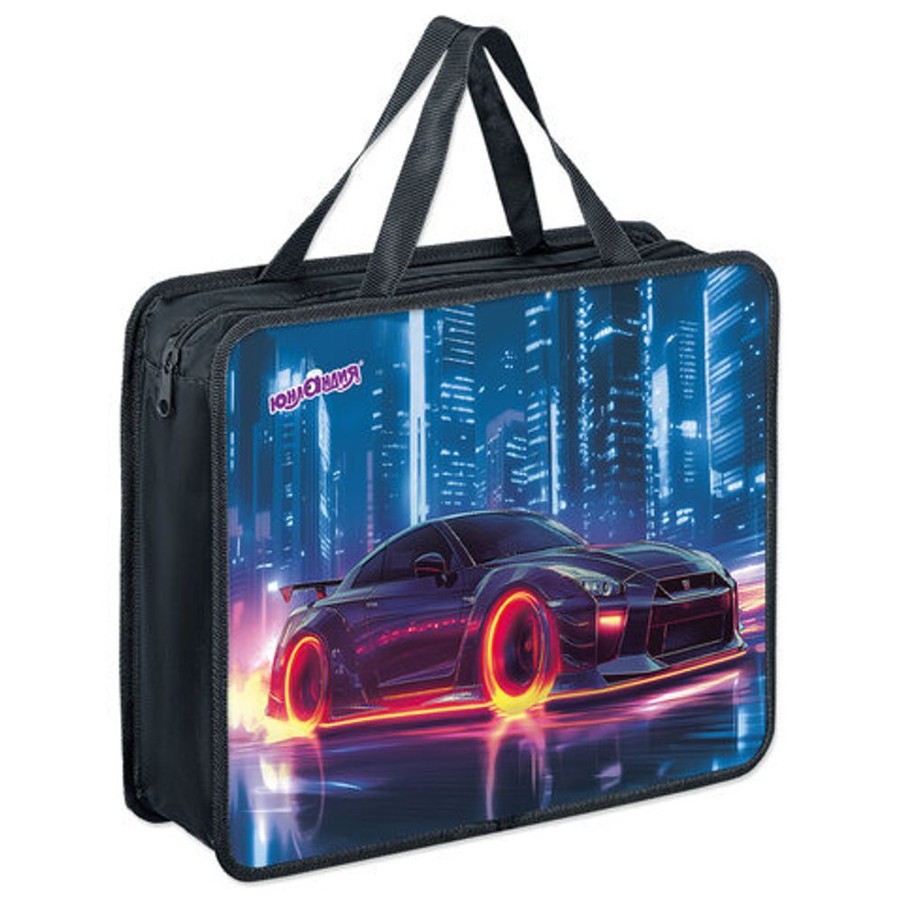 Папка на молнии с ручками ЮНЛАНДИЯ А4, 1 отделение, пластик, 80 мм, "Fire wheels", 273364