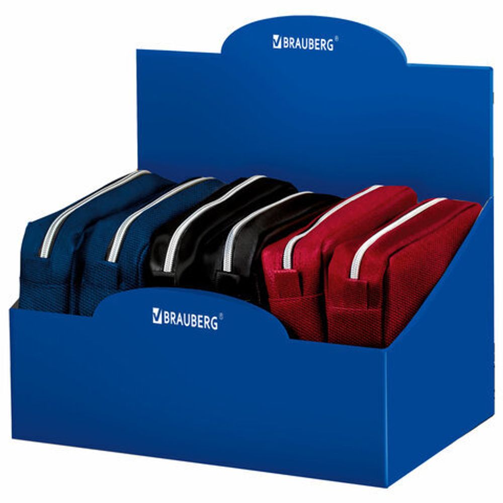 Пенал мягкий BRAUBERG "Basic" выполнен из прочного полиэстера. Пенал имеет 1 отделение. Вмещает до 50 канцелярских принадлежностей стандартных размеров. Код-ассорти поставляется в дисплее.Пеналы, представленные в дисплее, выполнены из прочного полиэстера. Имеют 1 отделение с застежкой-молнией. Снаружи дополнительное отделение - карман с застежкой на молнии. Пенал имеет оптимальный размер, 19х9х4 см, для размещения в нем не только письменных принадлежностей, но и повседневных мелочей, косметики, аксессуаров. Таким образом он может выполнять роль универсальной сумочки-косметички, которую можно всегда взять с собой.