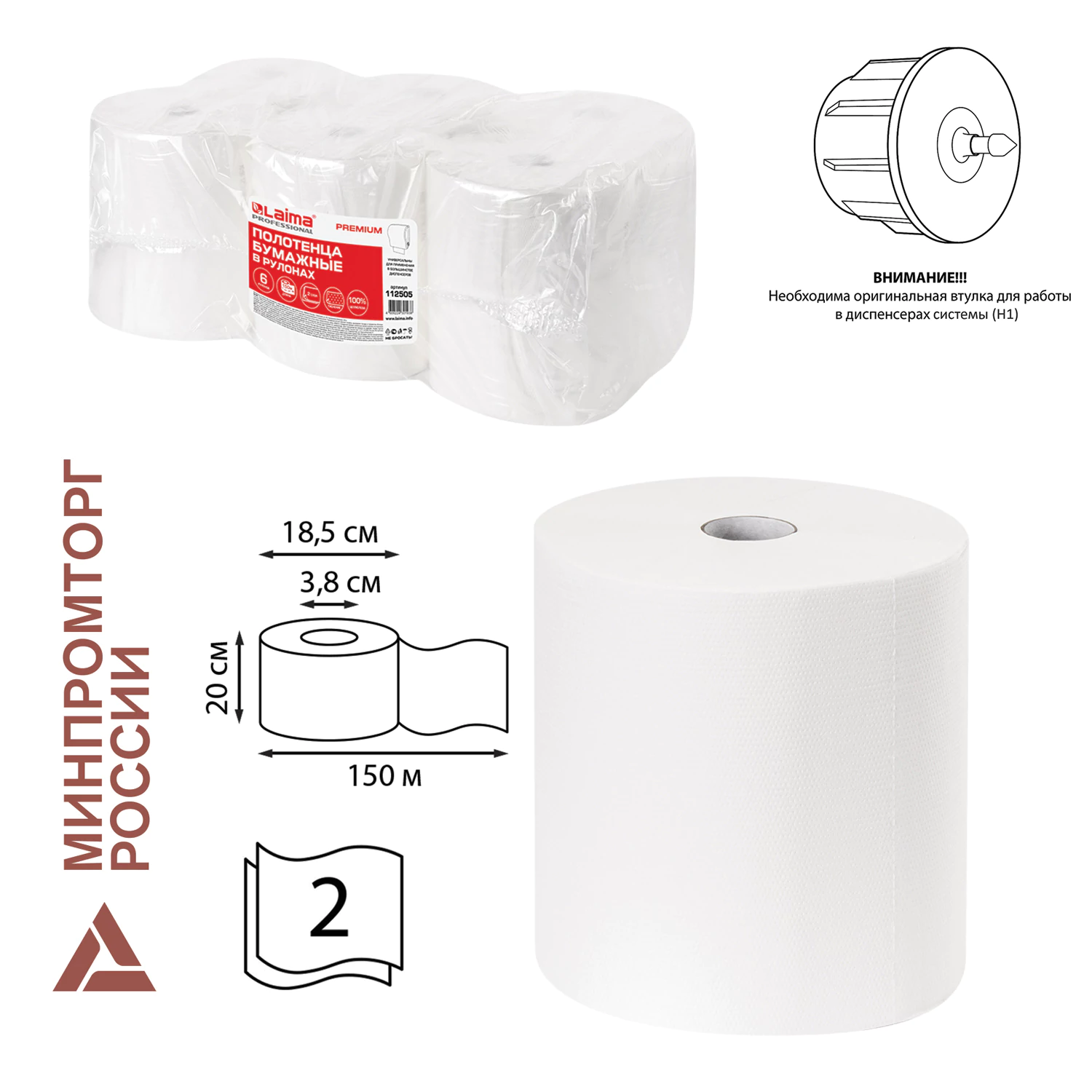Бумажные полотенца LAIMA PREMIUM — это сочетание качества и удобства использования. Благодаря двухслойной структуре с тиснением они обеспечивают высокий уровень комфорта и гигиеничности. Сделанные из 100% целлюлозы, эти полотенца подходят как для домашнего обихода, так и для общественных мест с высокой проходимостью. Комплект включает шесть рулонов по 150 метров каждый, что делает их экономичным выбором. Кроме того, совместимость с различными типами оборудования делает эти бумажные полотенца универсальным решением для любого интерьера.Бумажные полотенца в рулонах LAIMA PREMIUM. Подходят к диспенсерным системам H1 ПРИ ИСПОЛЬЗОВАНИИ ОРИГИНАЛЬНЫХ ВТУЛОК от расходных материалов H1.Двухслойные полотенца с тиснением, которое придает полотенцам дополнительную мягкость. Изготовлены из 100% целлюлозы. Длина намотки составляет 150 м, внутренний диаметр втулки – 3,8 см. Сочетаются с оборудованием других производителей. 6 рулонов в комплекте.