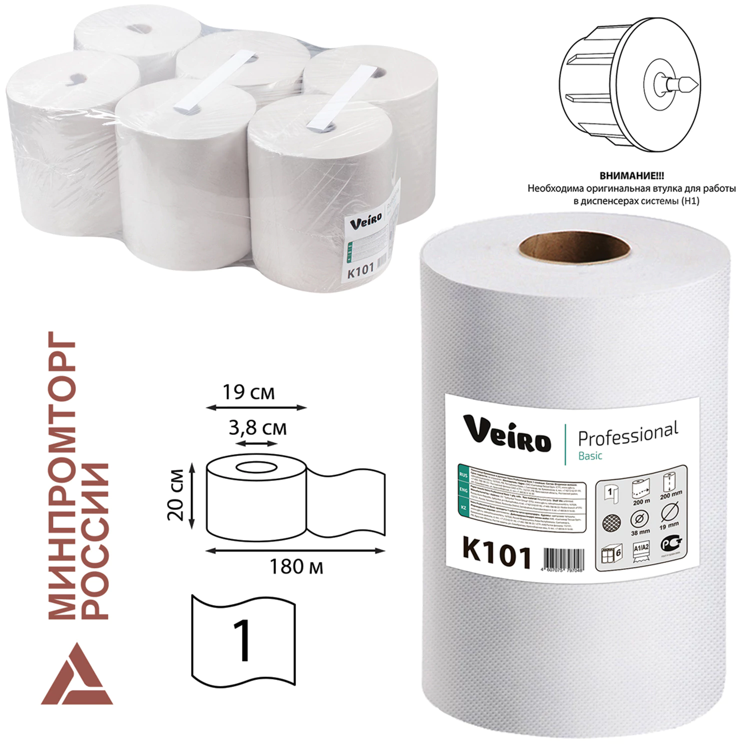 Отличаются высоким качеством изготовления из стопроцентного вторсырья, что обеспечивает оптимальное соотношение цены и эффективности применения. Продукт упакован в прочные спаи по шесть рулонов, высота каждого составляет 20 мм при ширине и глубине 18,5 мм, внутренний диаметр втулки – 3,8 мм. Подходит для использования исключительно с диспенсерными системами H1 (при условии применения оригинальных втулок). Соответствуют требованиям эконом-сегмента, обеспечивая надежность и удобство эксплуатации в общественных местах.Бумажные полотенца в рулонах VEIRO ProfessionalПодходят к диспенсерным системам H1 ПРИ ИСПОЛЬЗОВАНИИ ОРИГИНАЛЬНЫХ ВТУЛОК от расходных материалов H1. Прекрасно подходят для мест с высокой и средней проходимостью.