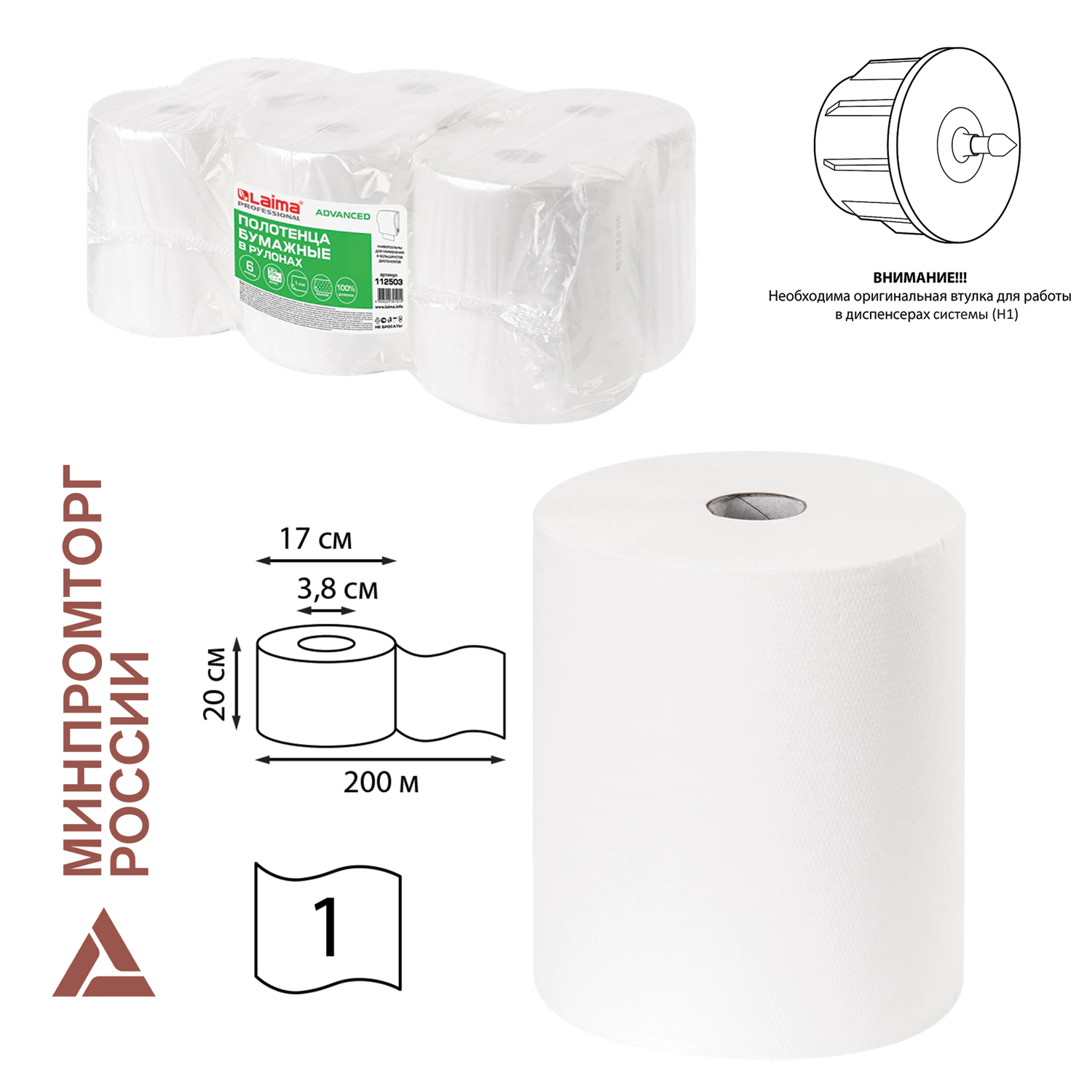 Бумажные полотенца LAIMA обеспечивают высокий уровень комфорта и удобства благодаря своему составу и функциональности. Они произведены из качественной 100% целлюлозы, что гарантирует их безопасность и экологичность. Полотенца имеют однослойную структуру с приятным тиснением, придающим им особую мягкость. С точки зрения совместимости, они прекрасно сочетаются как с оригинальными диспенсерными системами H1, так и с устройствами других брендов. Это делает их универсальным выбором для дома или офиса.Бумажные полотенца в рулонах LAIMA ADVANCED подходят к диспенсерным системам H1 ПРИ ИСПОЛЬЗОВАНИИ ОРИГИНАЛЬНЫХ ВТУЛОК от расходных материалов H1.Однослойные полотенца с тиснением, которое придает полотенцам дополнительную мягкость. Изготовлены из 100% целлюлозы. Сочетаются с оборудованием других производителей. Длина намотки составляет 200 м, внутренний диаметр втулки - 3,8 см. 6 рулонов в комплекте.