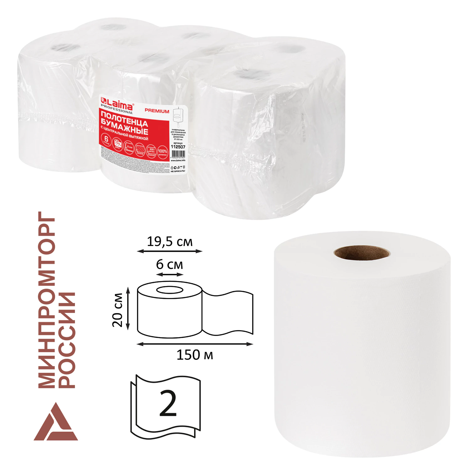 Бумажные полотенца LAIMA PREMIUM изготовлены из 100% целлюлозы. Удаляемая втулка предполагает использование полотенец в диспенсерах с центральной вытяжкой, в местах, где требуется протирать и руки, и поверхности.Полотенца двухслойные с тиснением и перфорацией. Тиснение придает полотенцам дополнительную мягкость. Содержат 600 листов размером 20х25 см. Длина намотки составляет 150 м. Внутренний диаметр втулки - 60 см. Сочетаются с оборудованием других производителей. 6 рулонов в комплекте.