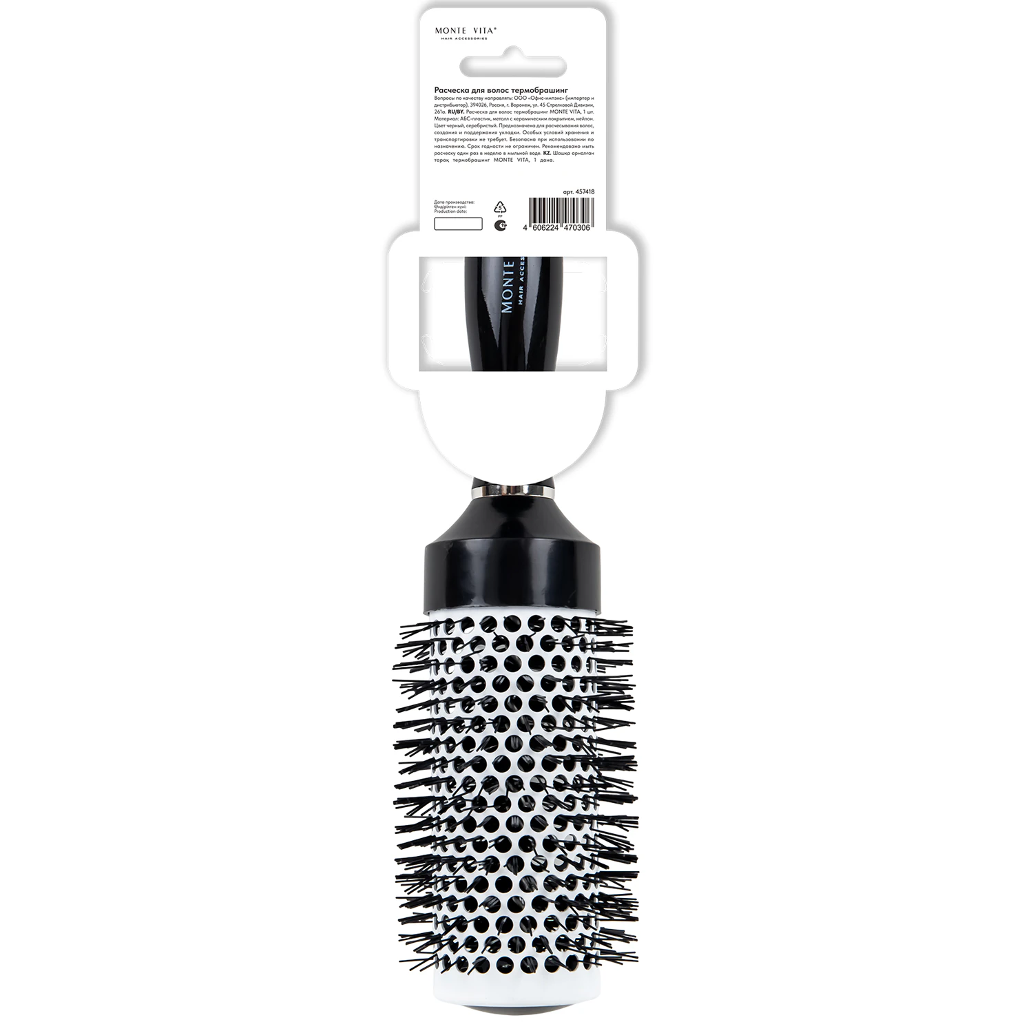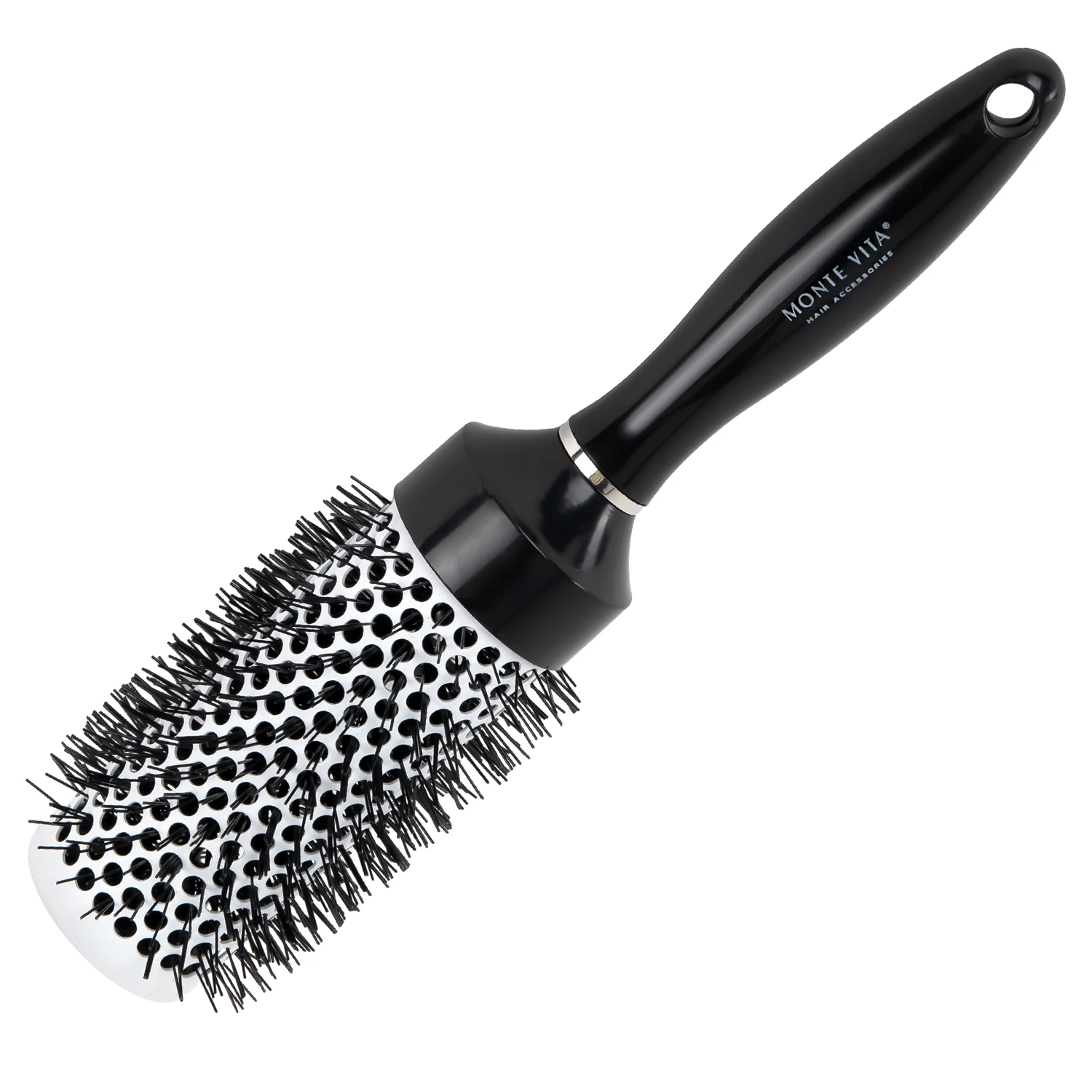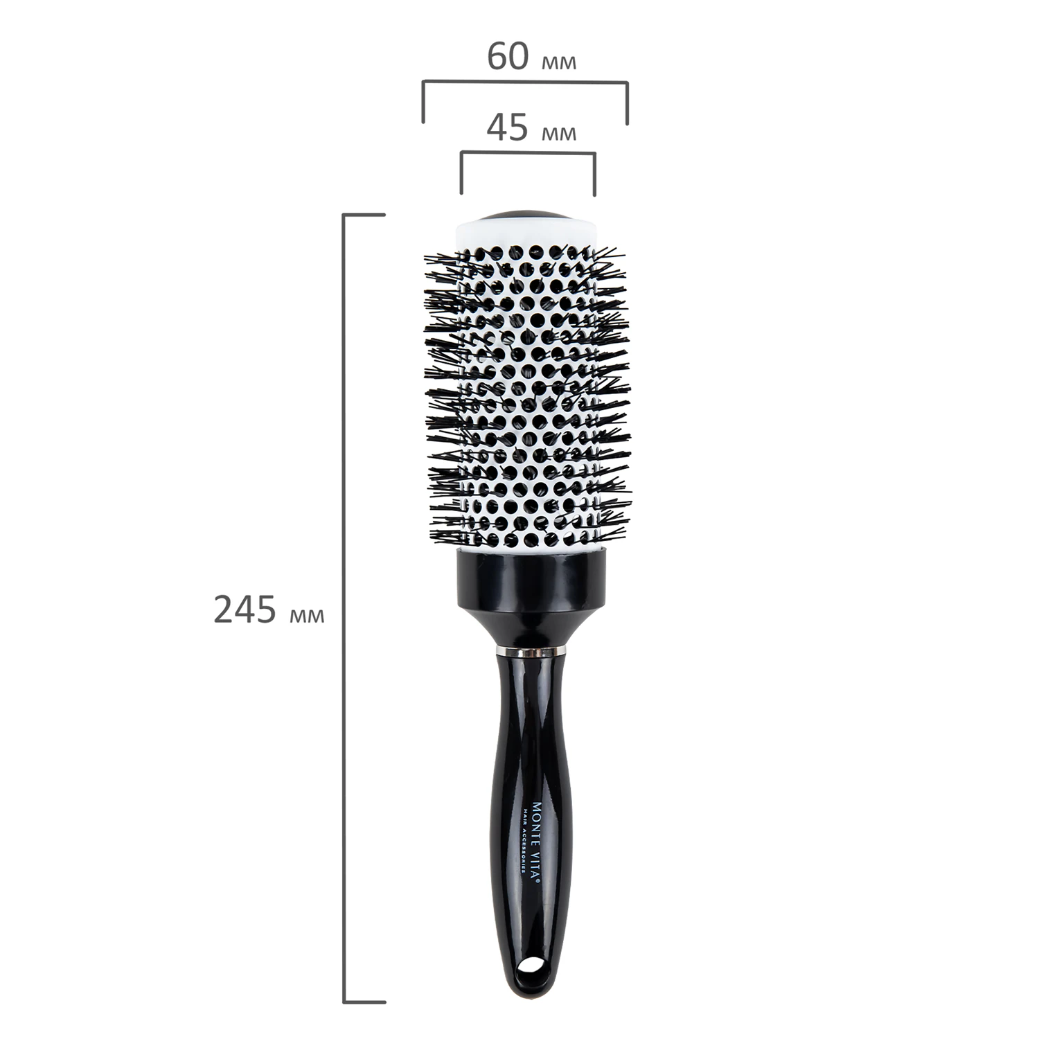 Термобрашинг с керамико-ионным покрытием быстро и равномерно распределяет тепло при сушке феном, предотвращая перегрев и сохраняя естественный блеск волос. Нейлоновая щетина создает объем у корней и стимулирует рост. Удобная ручка из ABS-пластика обеспечивает надежный контроль.