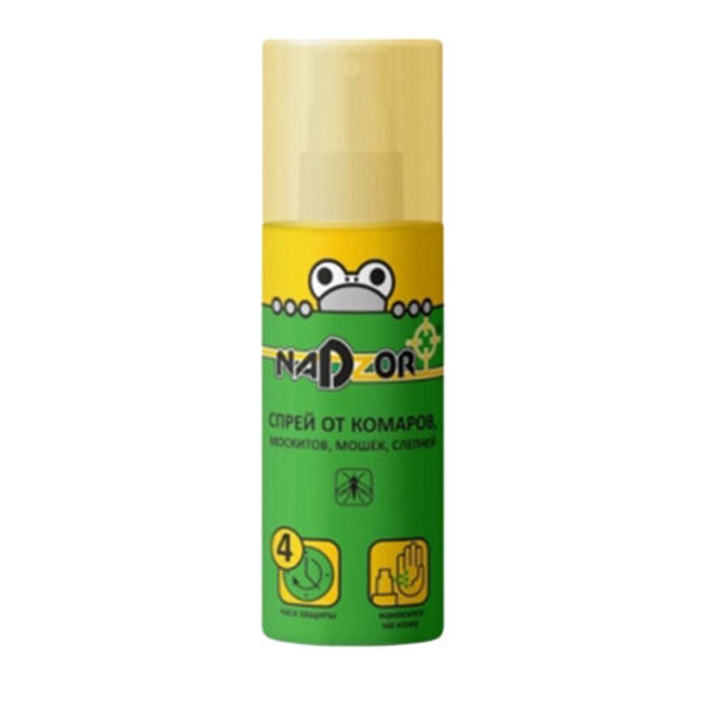 Спрей NADZOR защищает от комаров, москитов, мошек и слепней.Наносится тонким слоем без втирания на открытые участки тела (лицо, руки, шею, ноги) или одежду. При необходимости обработку можно повторить. Действие спрея длится до 4 часов.