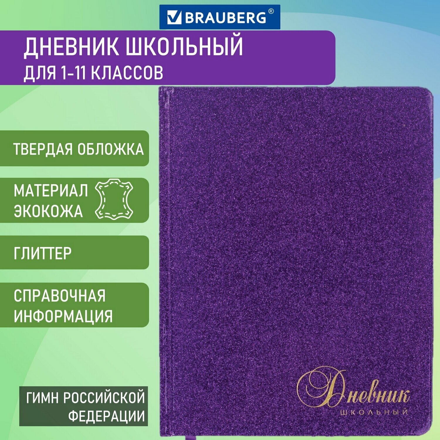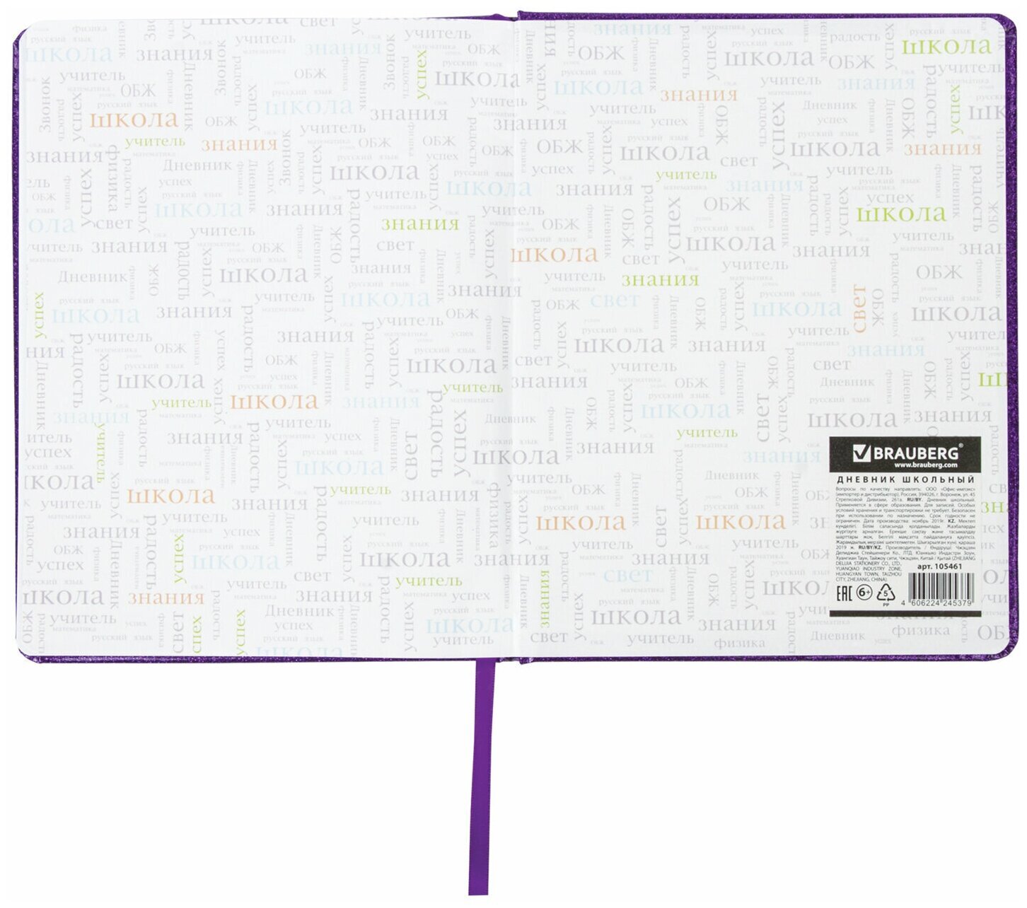 Дневник BRAUBERG для учащихся 1-11 классов с оригинальной обложкой. Для удобства пользования снабжен закладкой-ляссе.Твердая обложка из экокожи надежно защищает бумагу и долго сохраняет привлекательный внешний вид. Внутренний блок содержит 48 листов и состоит из офсетной белой бумаги плотностью 70 г/м2. В справочном материале собраны основные подсказки для учащихся.