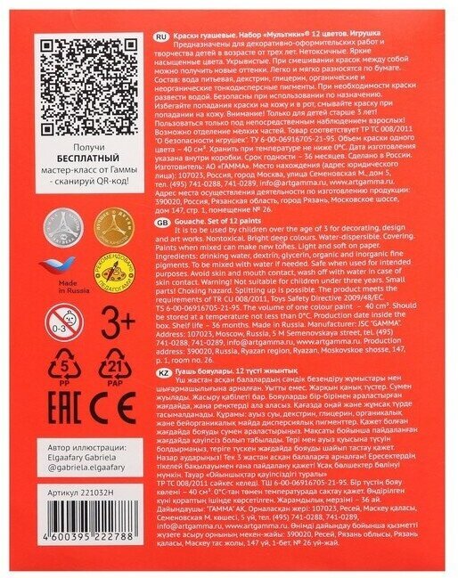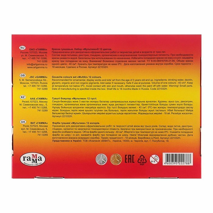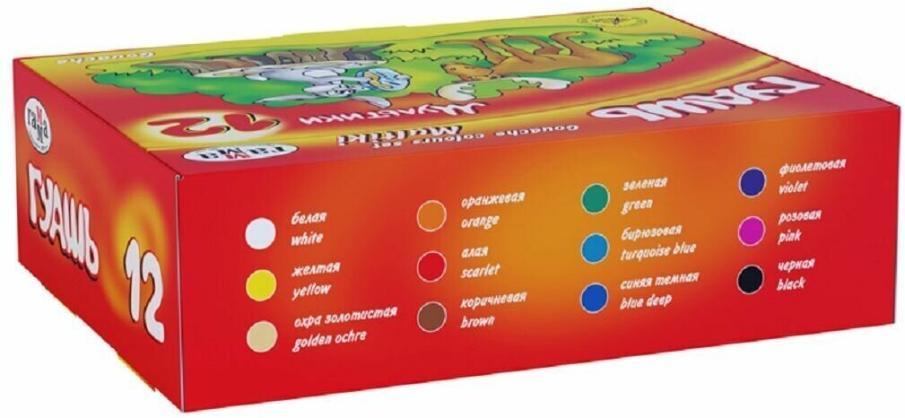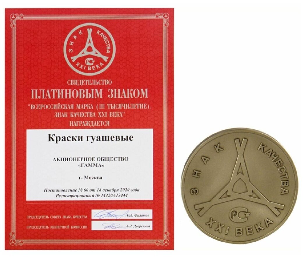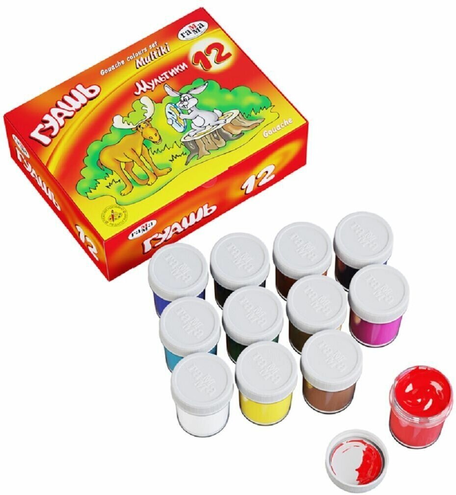 Для изготовления гуашевых красок используются натуральные высококачественные пигменты, повышающие светостойкость и насыщенность краски. Краски хорошо ложатся на бумагу и обладают высокой укрывистостью.