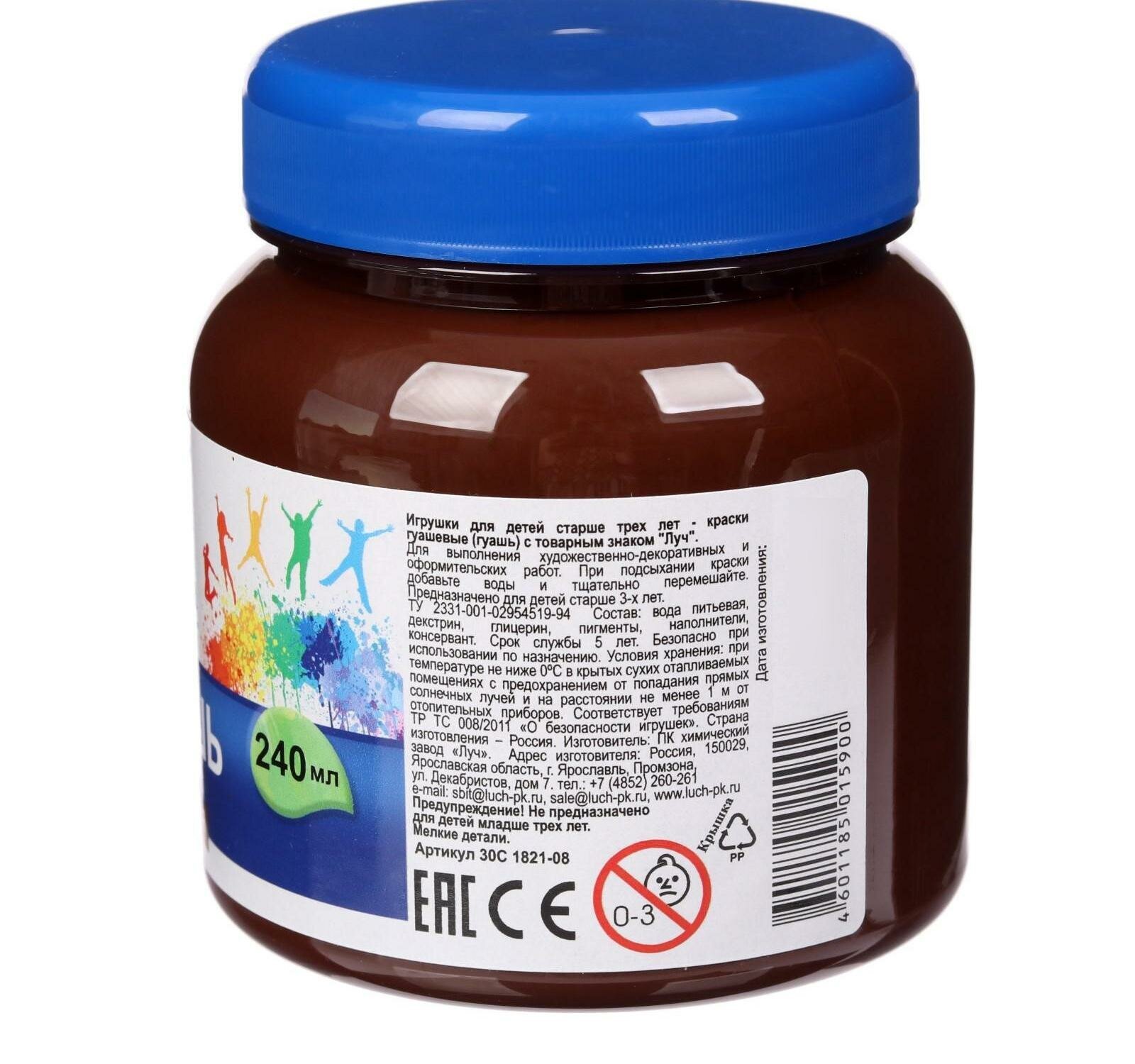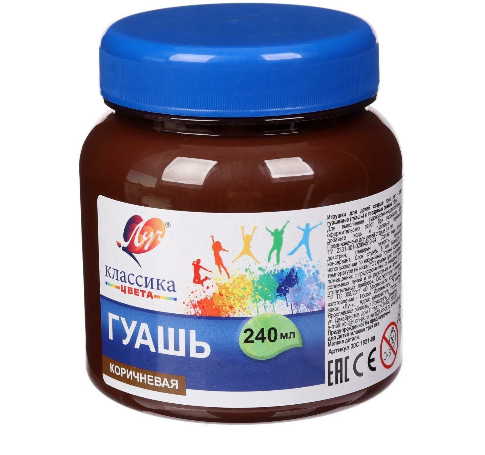 Гуашь художественная 1 шт. ЛУЧ "Классика", 240 мл, коричневая, 30С 1821-08