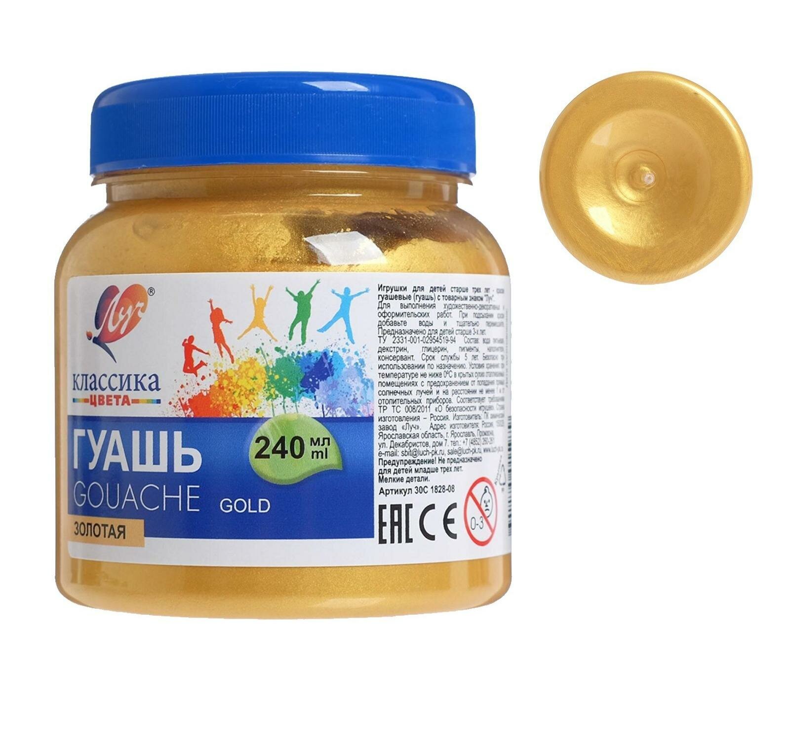Гуашь художественная 1 шт. ЛУЧ "Классика", 240 мл, золотая, 30С 1828-08