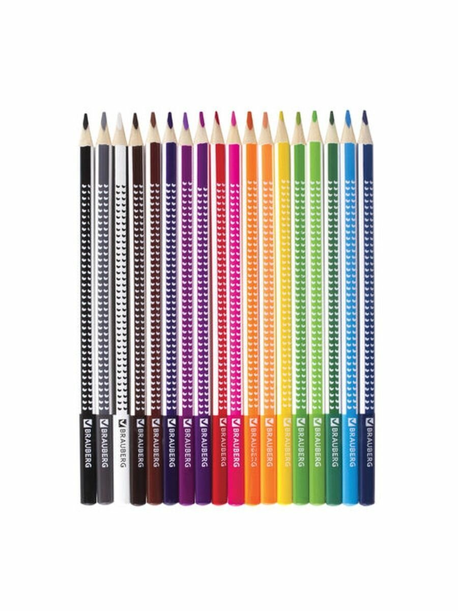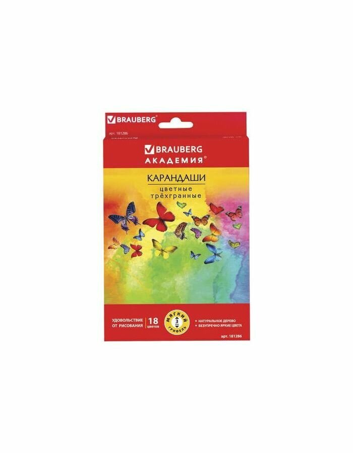 Цветные карандаши BRAUBERG "Бабочки" предназначены для детского и художественного творчества, а красивые бабочки, изображенные на коробке, не оставят равнодушными творческих особ.Набор состоит из 18 цветов: желтый, красный, розовый, оранжевый, белый, персиковый, канареечный, голубой, салатовый, зеленый, темно-зеленый, пурпурный, фиолетовый, синий, коричневый, серый, черный. Удобный трехгранный корпус удобен для захвата и снижает напряжение кисти при рисовании. Также трехгранная форма позволяет не скатываться карандашу с поверхности стола во время занятий рисованием. Карандаши изготовлены из древесины ценных пород и имеют лакированный корпус с необычными полосками. Высокосортная древесина и качество исполнения гарантируют легкую заточку. Благодаря высококачественному грифелю диаметром 3 мм рисунок ляжет на бумагу густо сплошной четкой линией.
