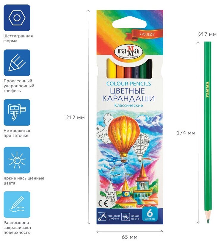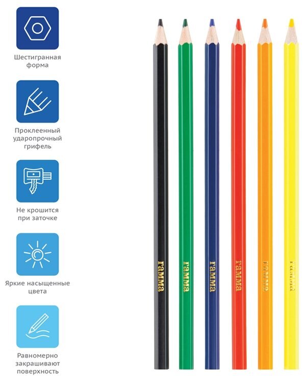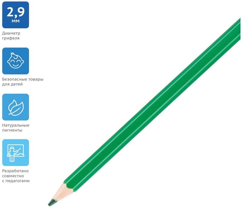 Карандаши для детей от 7 до 12 лет в уникальной упаковке-конверте и креативном дизайне. Проклеенный ударопрочный грифель не крошится во время заточки и не сломается даже после падения. Яркие, насыщенные цвета, равномерное закрашивание поверхности.