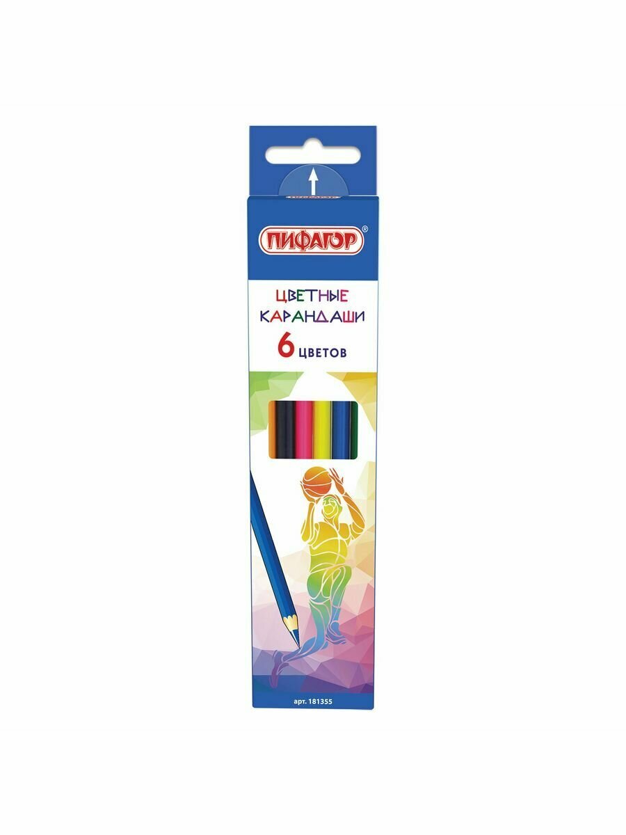 Цветные карандаши ПИФАГОР "БЫСТРЕЕ! ВЫШЕ! СИЛЬНЕЕ!" предназначены для детского творчества, а упаковка с забавным дизайном порадует как детей дошкольного и младшего школьного возраста, так и взрослых.Набор состоит из 6 цветов: красный, желтый, зеленый, голубой, коричневый, черный. Шестигранная форма сечения корпуса позволяет не скатываться карандашу с поверхности стола во время занятий рисованием. Они изготовлены из высокосортной белой древесины ценных пород и имеют лакированный корпус. Качество древесины и исполнения гарантируют легкую заточку. Грифель из натуральных материалов и пигментов диаметром 3 мм обладает повышенной прочностью. Все карандаши заточены и поставляются в картонной упаковке с европодвесом.