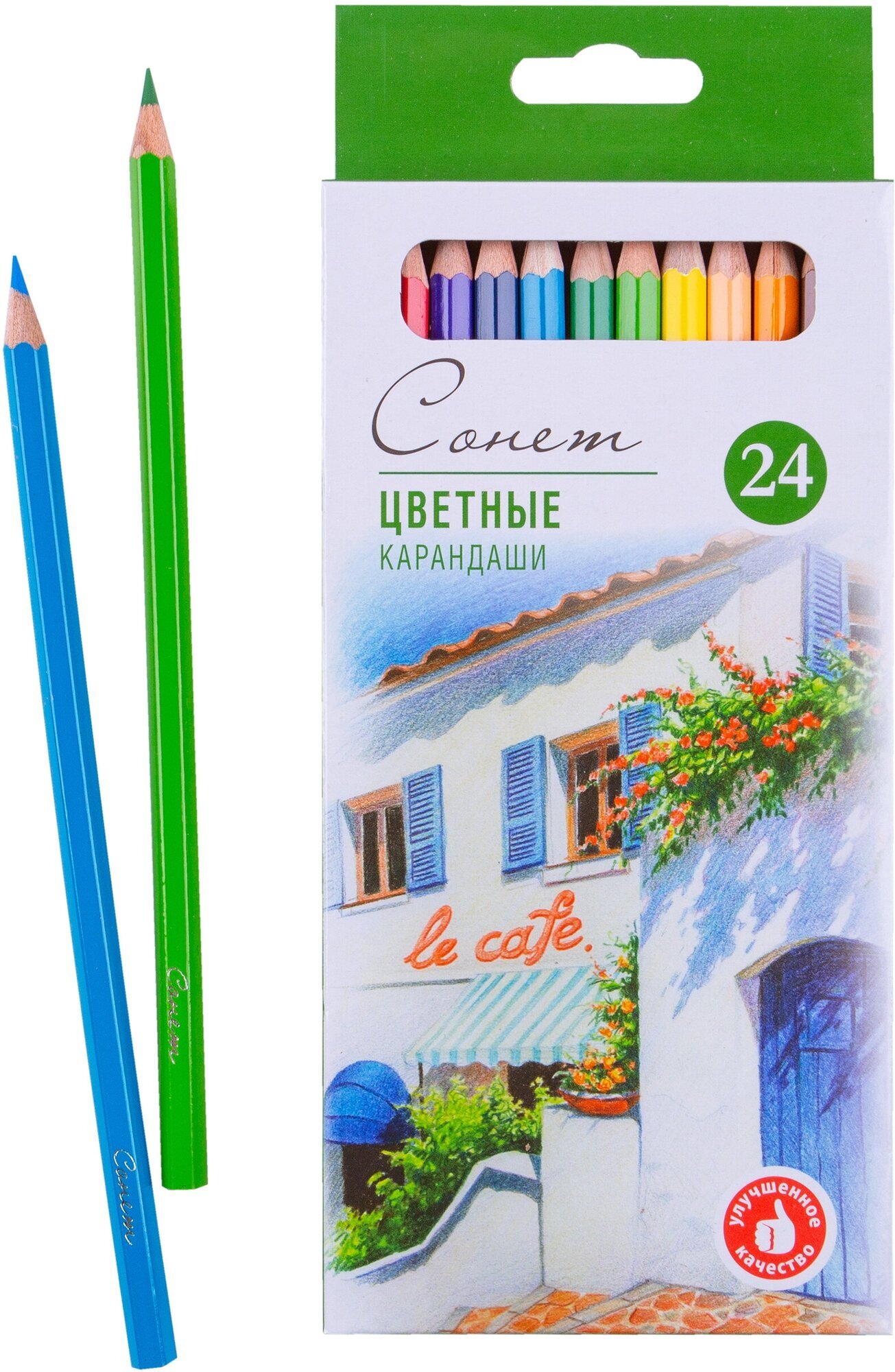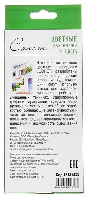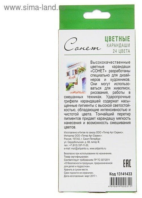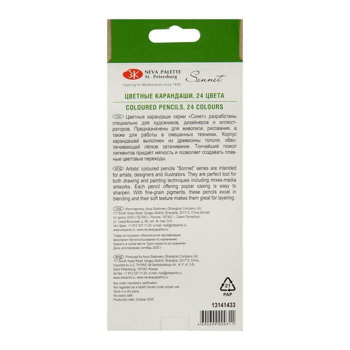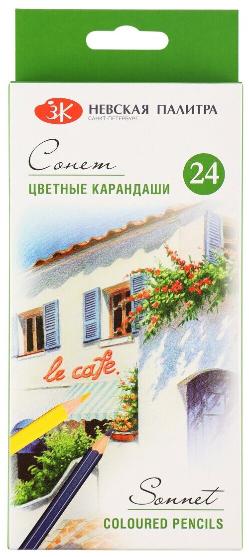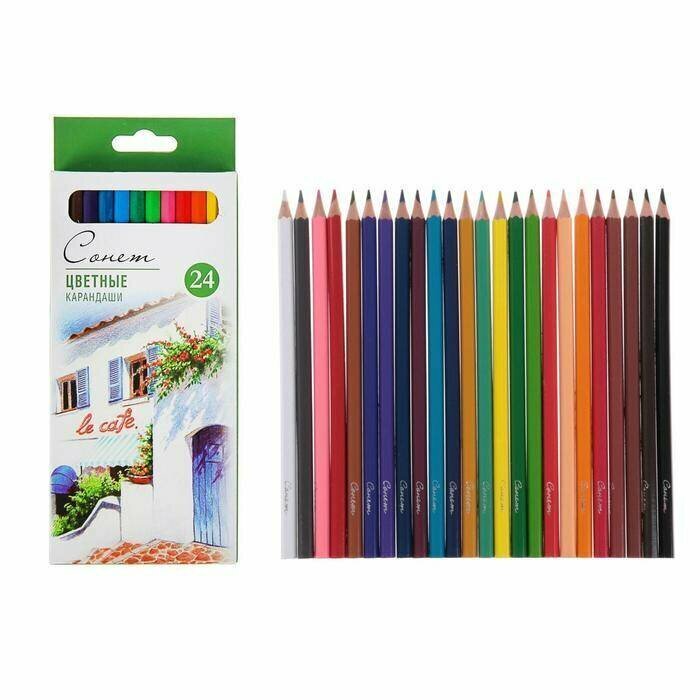 Карандаши цветные профессиональные "Сонет", 24 цвета, в картонной упаковке с европодвесом, 13141433