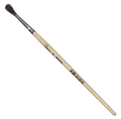 Художественная круглая кисть из натурального волоса белки. Кисть имеет острый кончик и отличается хорошей мягкостью и эластичностью. Подходит для работы с акварелью, темперой, гуашью.