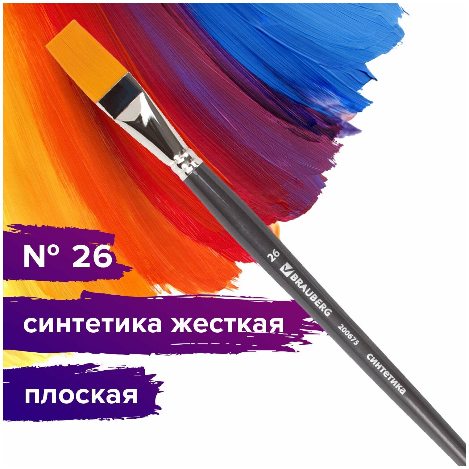 Художественная профессиональная синтетическая кисть BRAUBERG ART "CLASSIC" № 26 предназначена для работ густыми красками: гуашь, акрил, масло, темпера. Идеальна для водорастворимых масляных красок.Изготовлена с применением высококачественной южно-корейской синтетики. Синтетика превосходит щетину в легкости очистки и износостойкости, а упругость ворса и прекрасные впитывающие свойства пучка обеспечивают идеальное сохранение формы мазка.