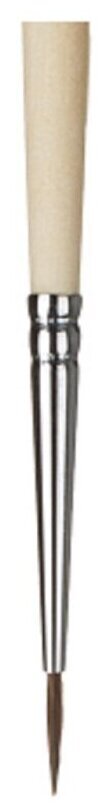 Высококачественная кисточка для художников представляет собой деревянный стилус с хромированной обоймой, зажимающей нормированный волос. Волос прекрасно сохраняет форму, не ломается, впитывает влагу и хорошо моется под проточной струей воды.