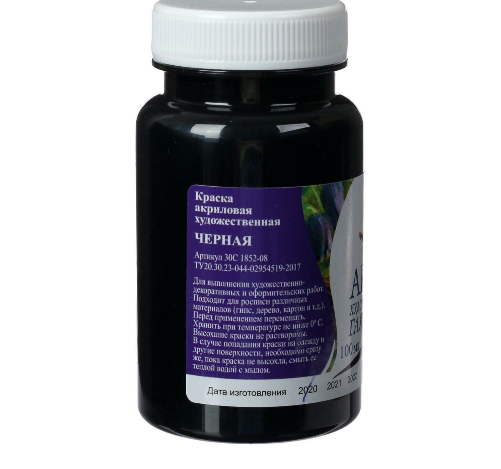Краска акриловая художественная ЛУЧ баночка 100 мл, черная, 30С 1852-08