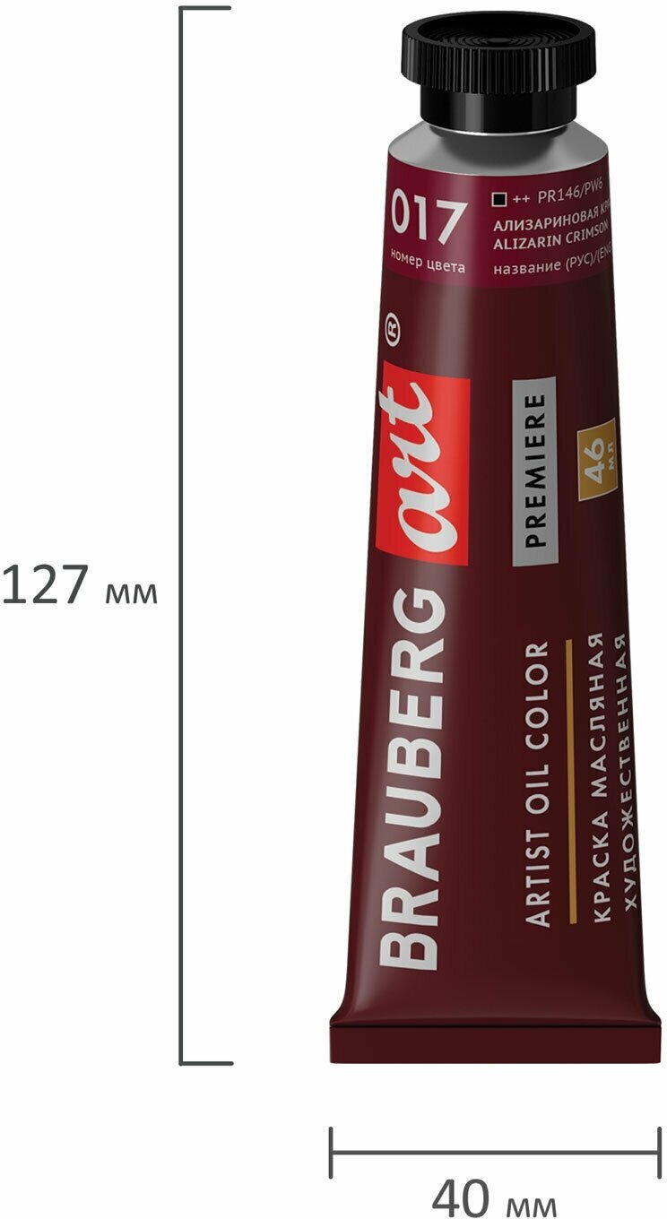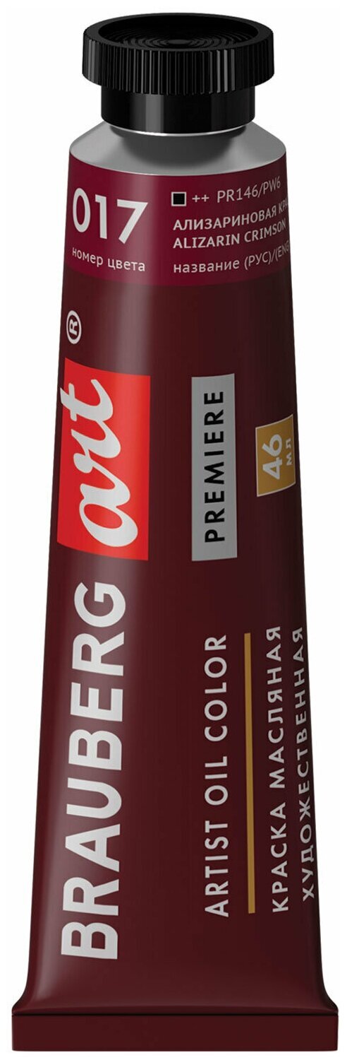 Художественная масляная краска BRAUBERG ART PREMIERE предназначена для профессиональных художников. Обладает высокой укрывистостью и светостойкостью. После высыхания сохраняет яркий и насыщенный цвет с характерным глянцевым блеском.Краска имеет 5 степеней затирки пигмента. Вязкая текстура краски обеспечивает сохранение ее эластичности в течение длительного времени. Все краски легко смешиваются между собой. Объем тубы - 46 мл.