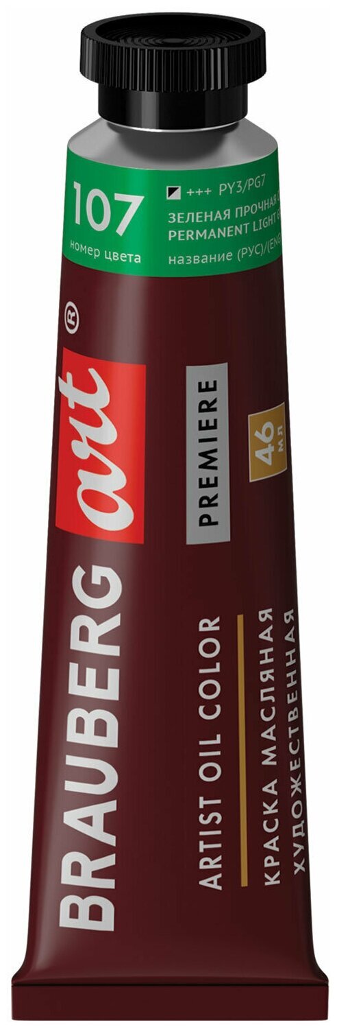 Краска масляная художественная BRAUBERG ART PREMIERE, 46 мл, проф. серия,ЗЕЛЕНАЯ ПРОЧНАЯ СВЕТ,191424