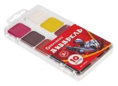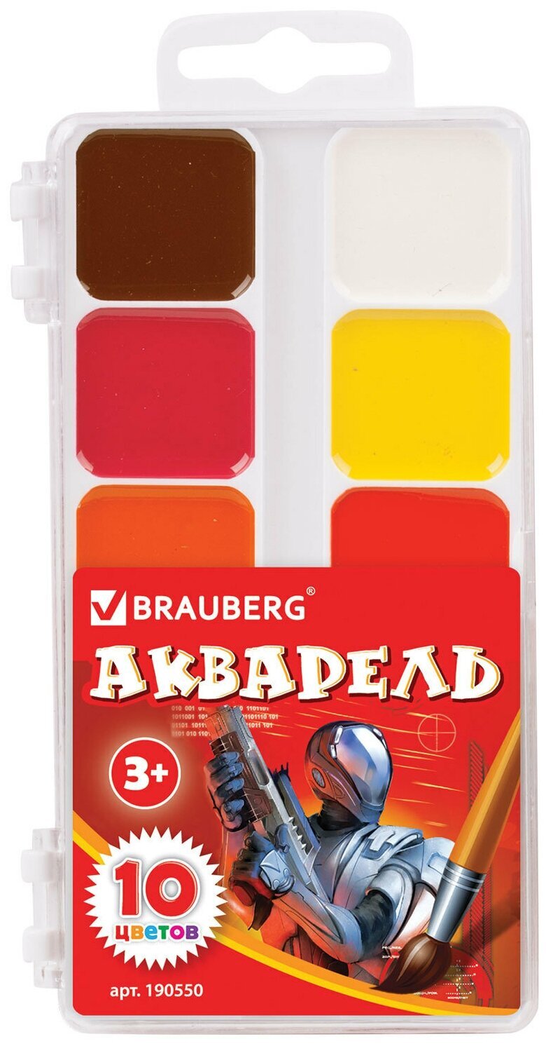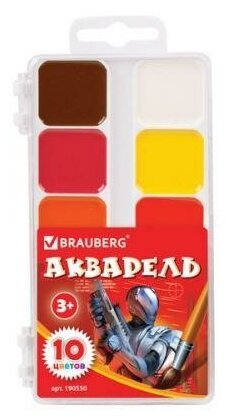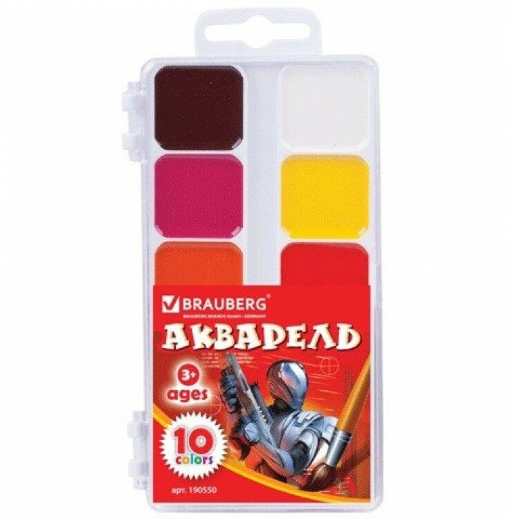Акварельные краски BRAUBERG применяются на уроках изобразительного искусства в школах и детских студиях живописи. Незаменимы для обучения рисованию и развития творческих способностей ребенка.10 ярких насыщенных цветов отлично смешиваются между собой и позволяют создать множество оттенков, обеспечивают однородное окрашивание. Краски быстро высыхают и не портятся со временем. Безопасны для детей, нетоксичны. Выпускаются в пластиковом пенале с прозрачной крышкой, квадратной формой кювет и отделением для кисточки. Упаковка обладает компактными размерами и легким весом.