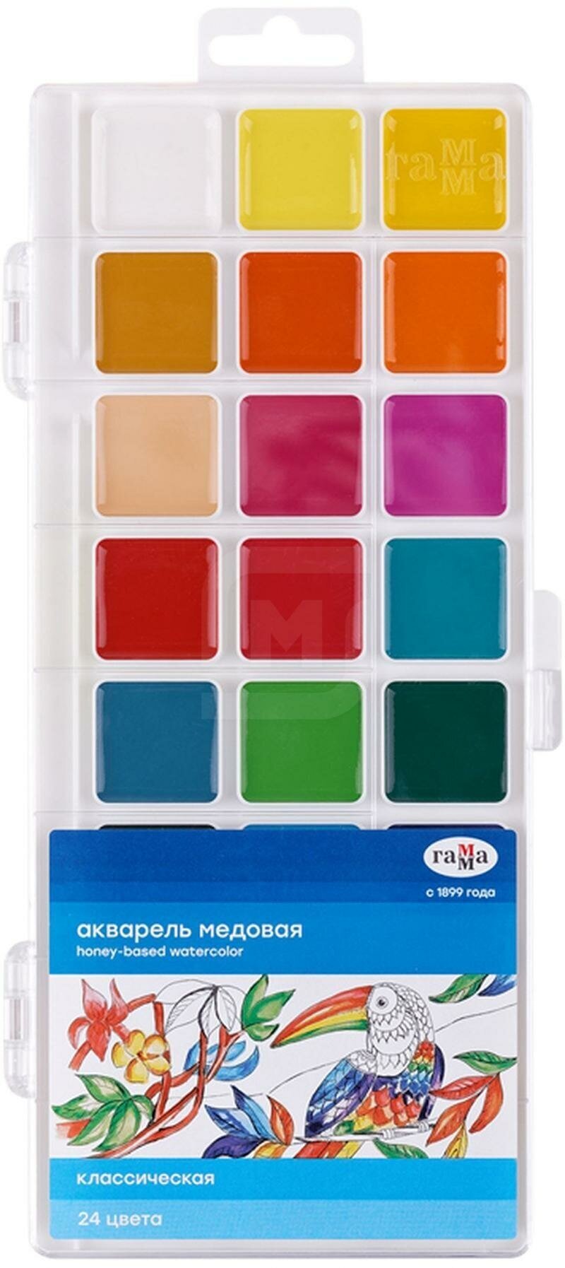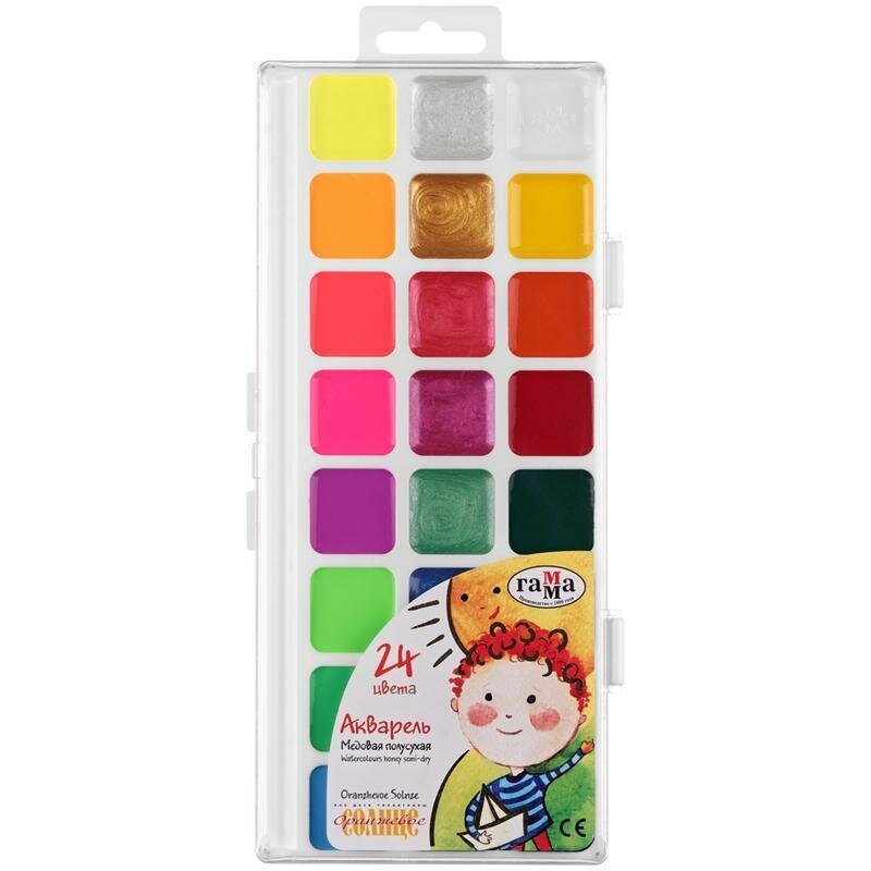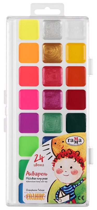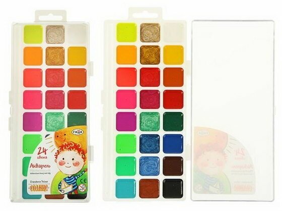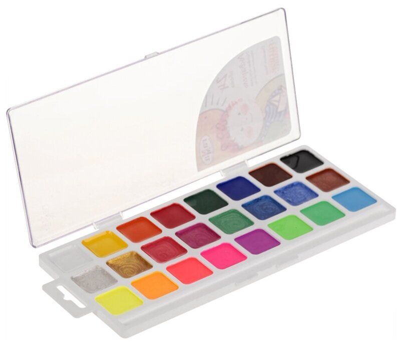 Акварельные краски cодержат стойкие и яркие пигменты, что позволяет получать насыщенные изображения, достигать ощущения бархатистости цвета. Краска всех цветов на одной подложке. Краски изготовлены с добавлением натуральной патоки и пчелиного меда.Состав набора: золотая перламутровая, лимонная флюоресцентная, красная перламутровая, оранжевая флюоресцентная, рубиновая перламутровая, красная флюоресцентная, светло-зеленая перламутровая, розовая флюоресцентная, голубая перламутровая, светло-зеленая флюоресцентная, синяя перламутровая, голубая флюоресцентная, серебряная перламутровая, фиолетовая флюоресцентная, зеленая флюоресцентная, коричневая перламутровая, голубая флюоресцентная.