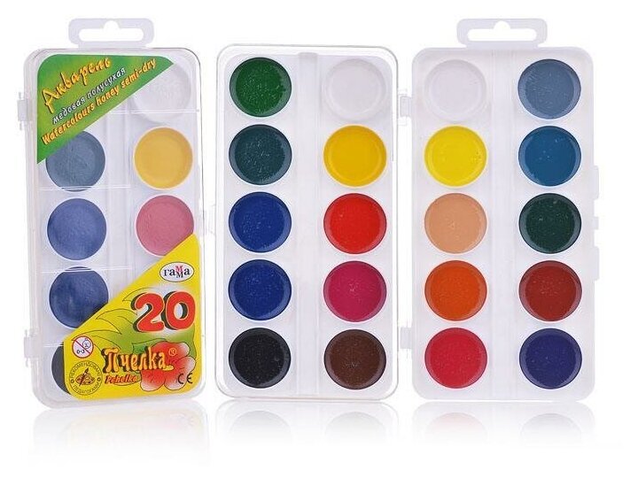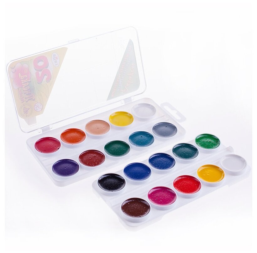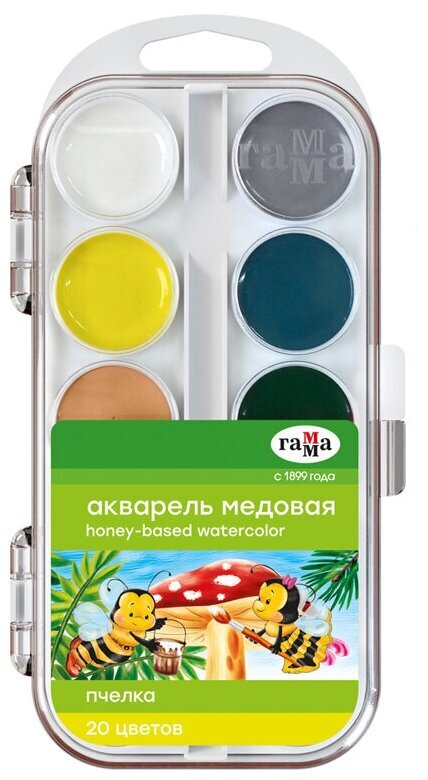 Краски в пластиковой коробке содержат стойкие и яркие пигменты, что позволяет получать насыщенные изображения с эффектом бархатистости цвета. Краски изготовлены с добавлением натуральной патоки и пчелиного меда.Состав набора: серая, белая, бирюзовая, лимонная, ярко-зеленая, телесная, красно-коричневая, фиолетовая, рубиновая, белая, желто-зеленая, светло-желтая, изумрудная светлая, голубая, розовая, ярко-синяя, коричневая, сажа газовая, светло-оранжевая, алая.