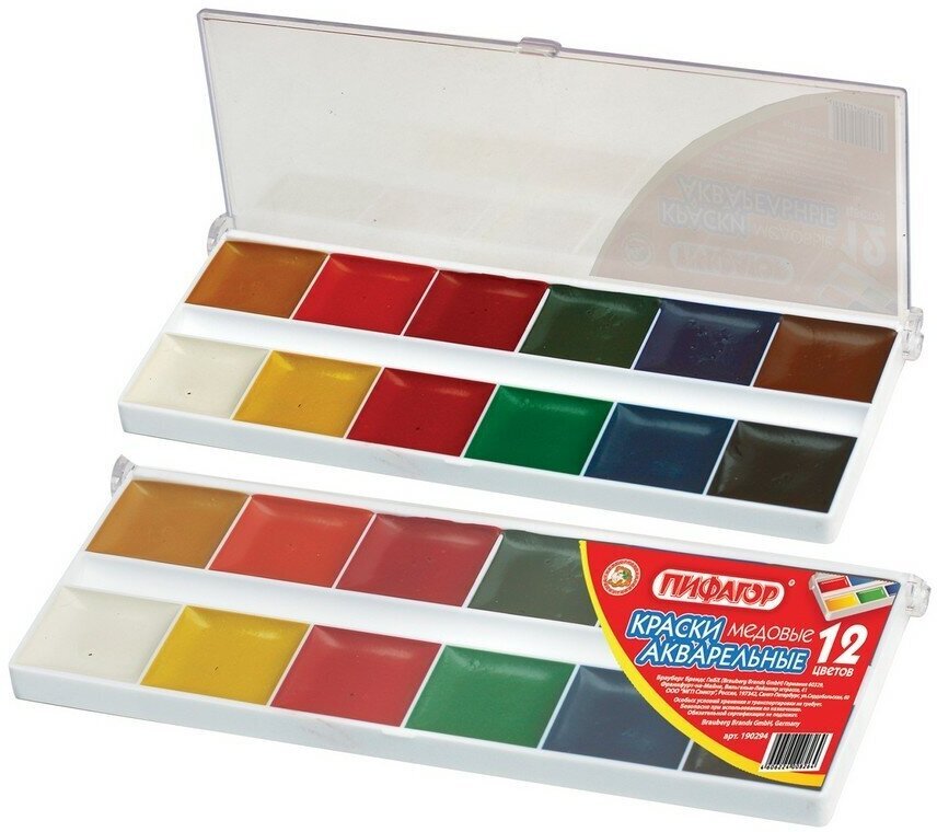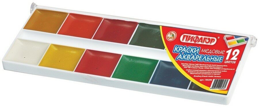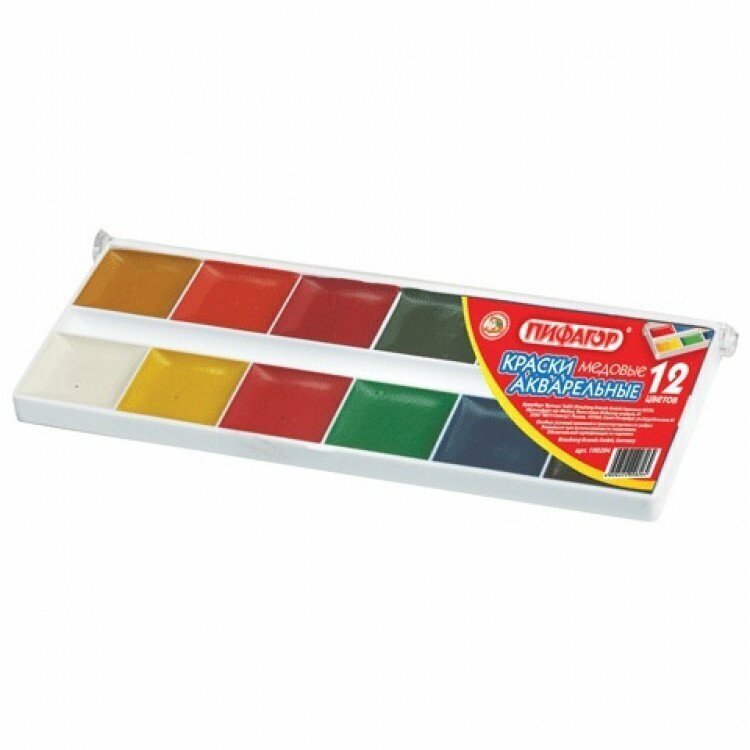 Акварельные краски ПИФАГОР незаменимы для юных художников, создающих свои первые изображения. Идеально подходят для дошкольников и учащихся младших классов.12 ярких насыщенных цветов отлично смешиваются между собой и позволяют создать множество оттенков, обеспечивают однородное окрашивание. Краски быстро высыхают и не портятся со временем. Безопасны для детей, нетоксичны. Выпускаются в пластиковом пенале с прозрачной крышкой, квадратной формой кювет и отделением для кисточки. Упаковка обладает компактными размерами и легким весом.