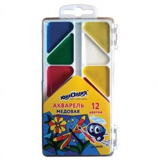Краски акварельные ЮНЛАНДИЯ "МОЗАИКА" прекрасно подходят для детского творчества. Рисование способствует развитию образного мышления, мелкой моторики рук, а также тонкому восприятию цветовой гаммы.Содержат 12 ярких цветов. Обладают отличной укрывистостью и высокой светоустойчивостью, прекрасно смешиваются и сохраняют яркость при высыхании. Отлично ложатся на бумагу. Изготовлены с добавлением патоки. Нетоксичны. Удобная треугольная форма кюветов. Имеется отделение для кисточки. Поставляются в пластиковой коробке с европодвесом.