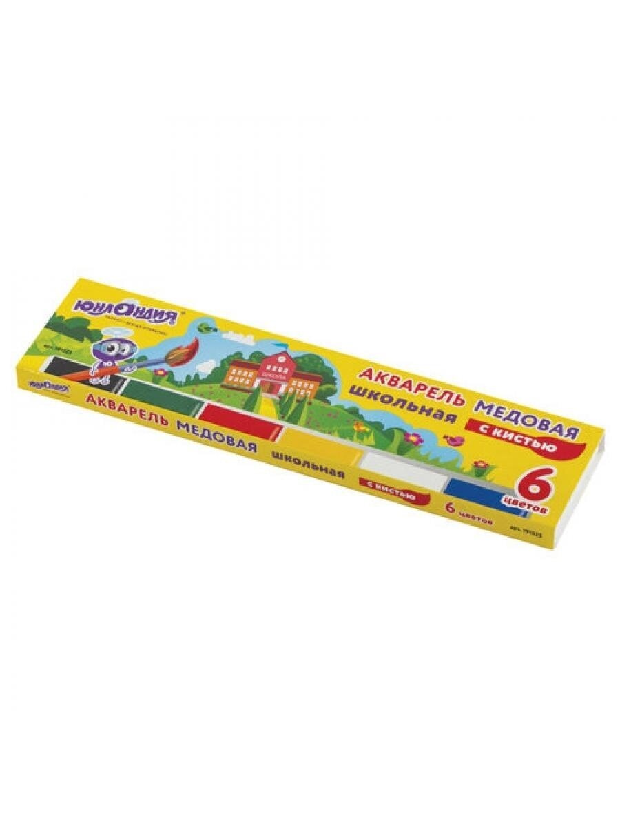 Акварельные краски ЮНЛАНДИЯ идеально подходят для уроков детского творчества и художественного изобразительного искусства. Рисование способствует развитию образного мышления, глазомера, мелкой моторики рук, тонкому восприятию цветовой гаммы.6 ярких насыщенных цветов отлично смешиваются между собой и позволяют создать множество оттенков, обеспечивают однородное окрашивание. Краски быстро высыхают и не портятся со временем. Безопасны для детей, нетоксичны. Упаковка обладает компактными размерами и легким весом. Форма кювет - квадратная. Кисть входит в комплект.
