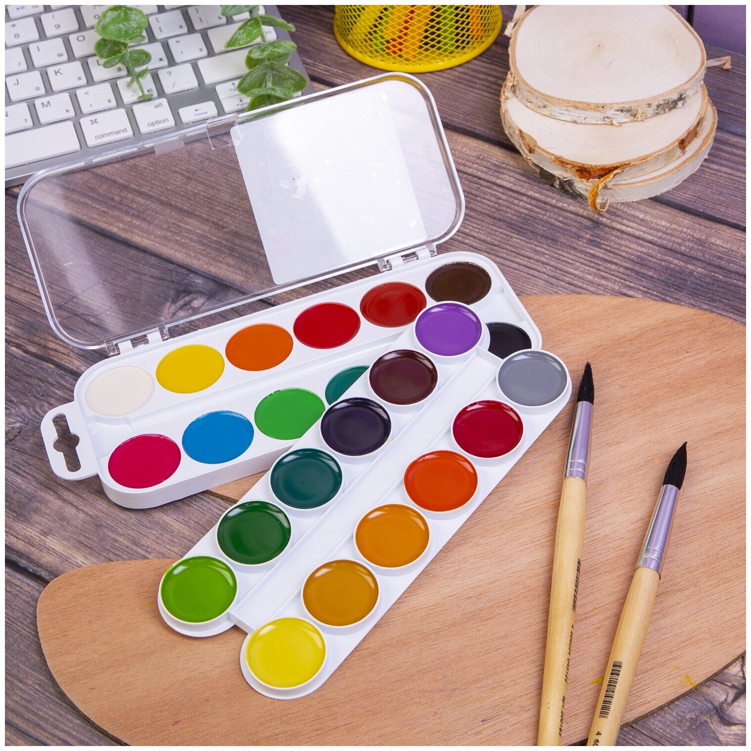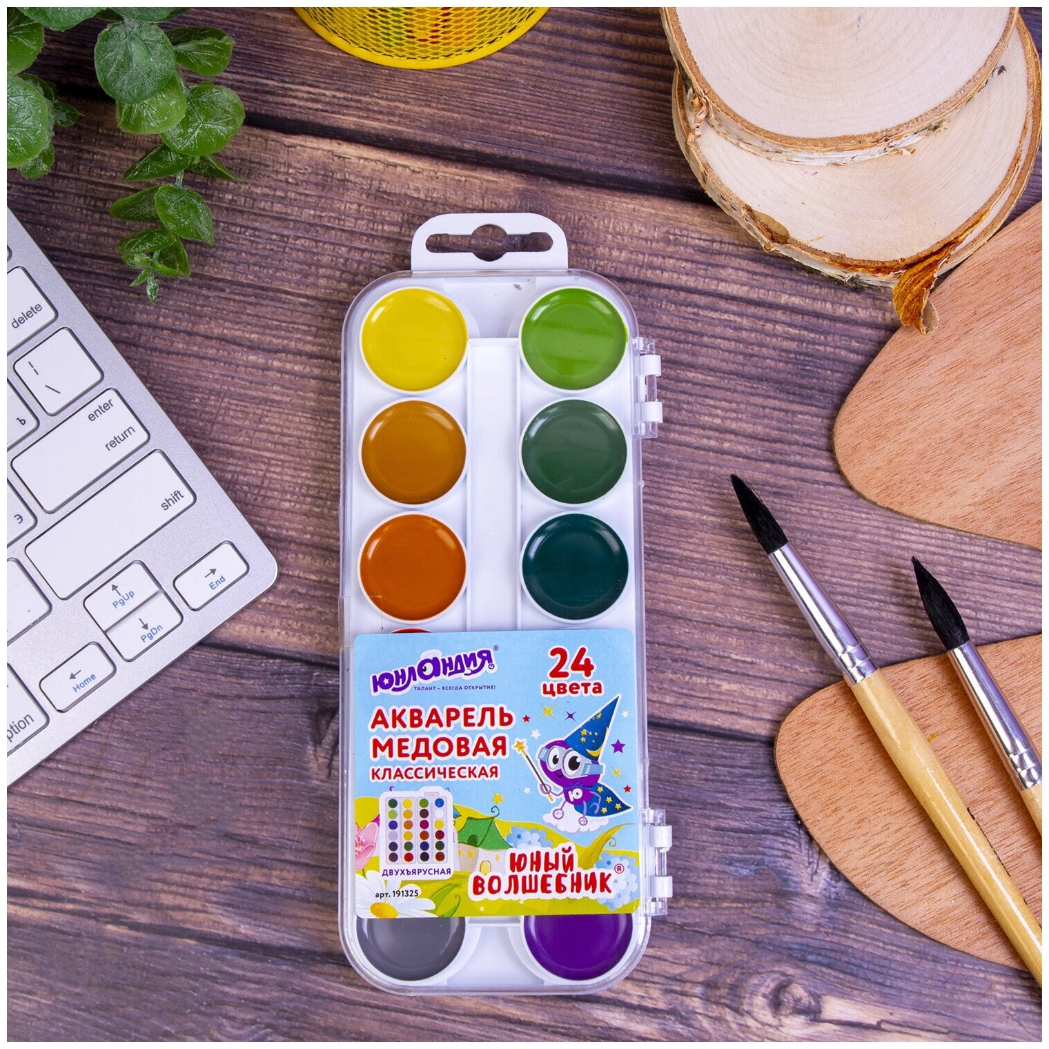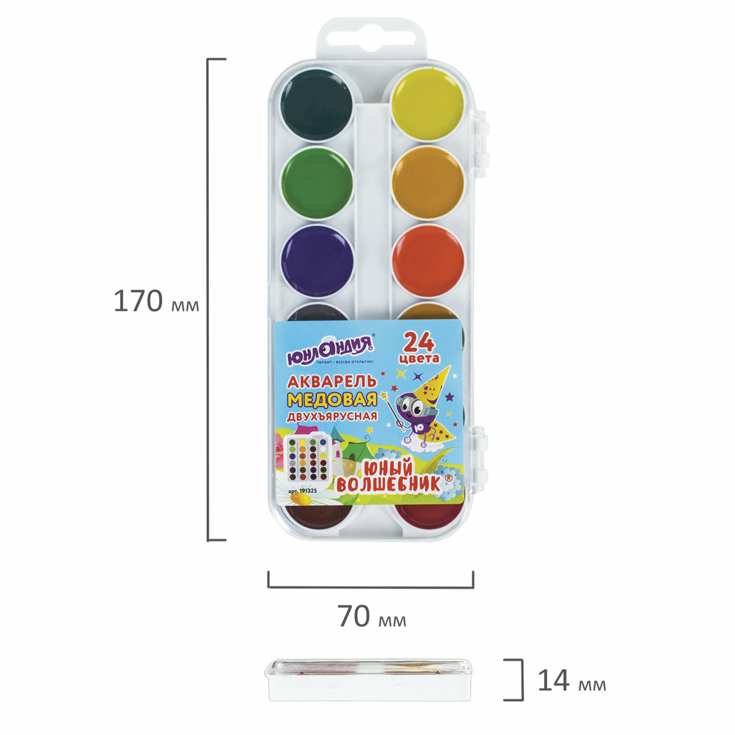 Акварельные краски ЮНЛАНДИЯ идеально подходят для уроков детского творчества и художественного изобразительного искусства. Рисование способствует развитию образного мышления, глазомера, мелкой моторики рук, тонкому восприятию цветовой гаммы.24 ярких насыщенных цвета отлично смешиваются между собой и позволяют создать множество оттенков, обеспечивают однородное окрашивание. Краски быстро высыхают и не портятся со временем. Безопасны для детей, нетоксичны. Выпускаются в пластиковом пенале с прозрачной крышкой, круглой формой кювет и отделением для кисточки. Упаковка обладает компактными размерами и легким весом.