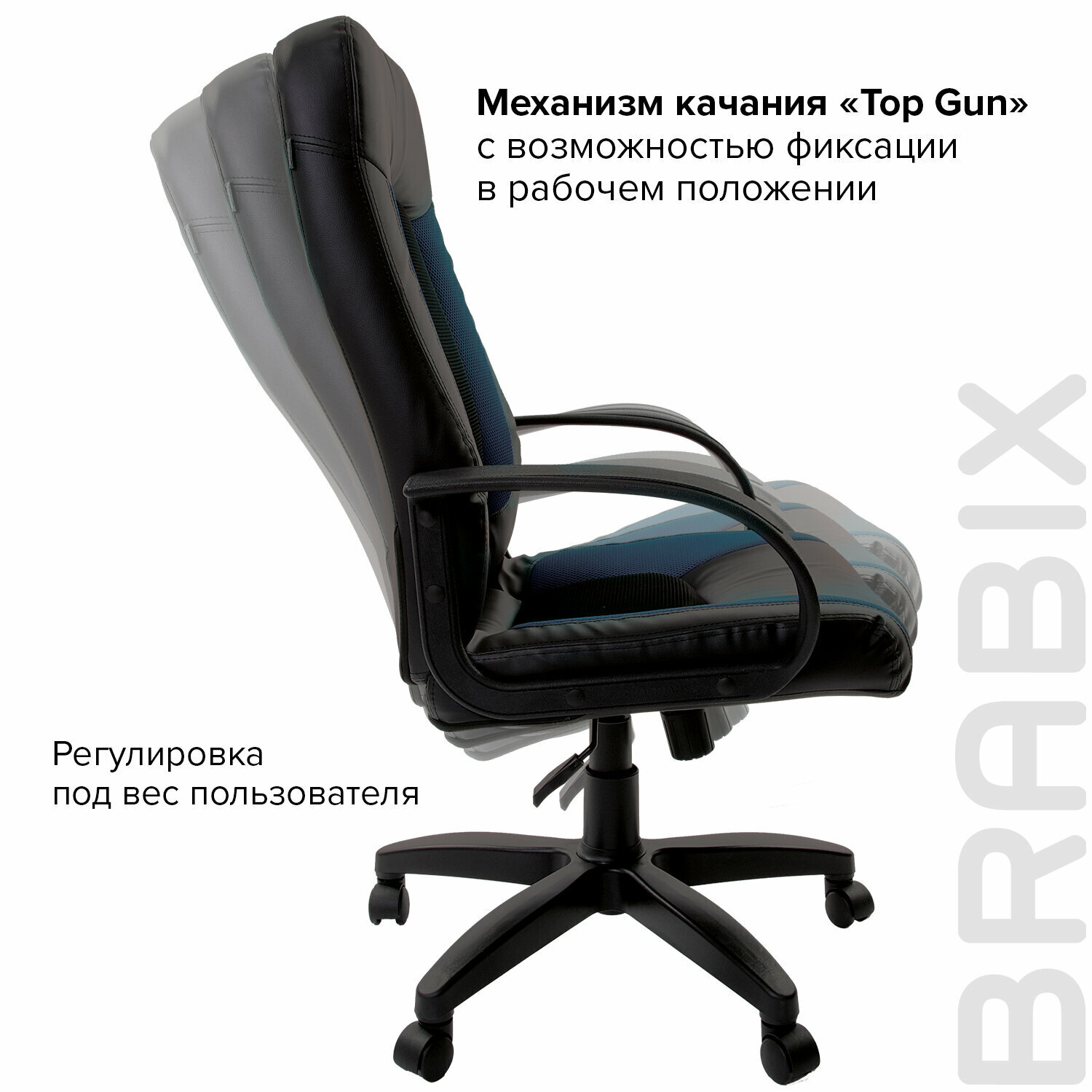 Надежный механизм качания "Top Gun" гарантирует хорошую поддержку спины и поясницы за счет возможности свободного качания с фиксацией в одном рабочем положении и регулировку угла наклона под вес сидящего.