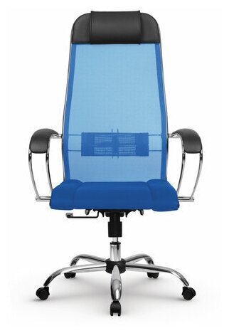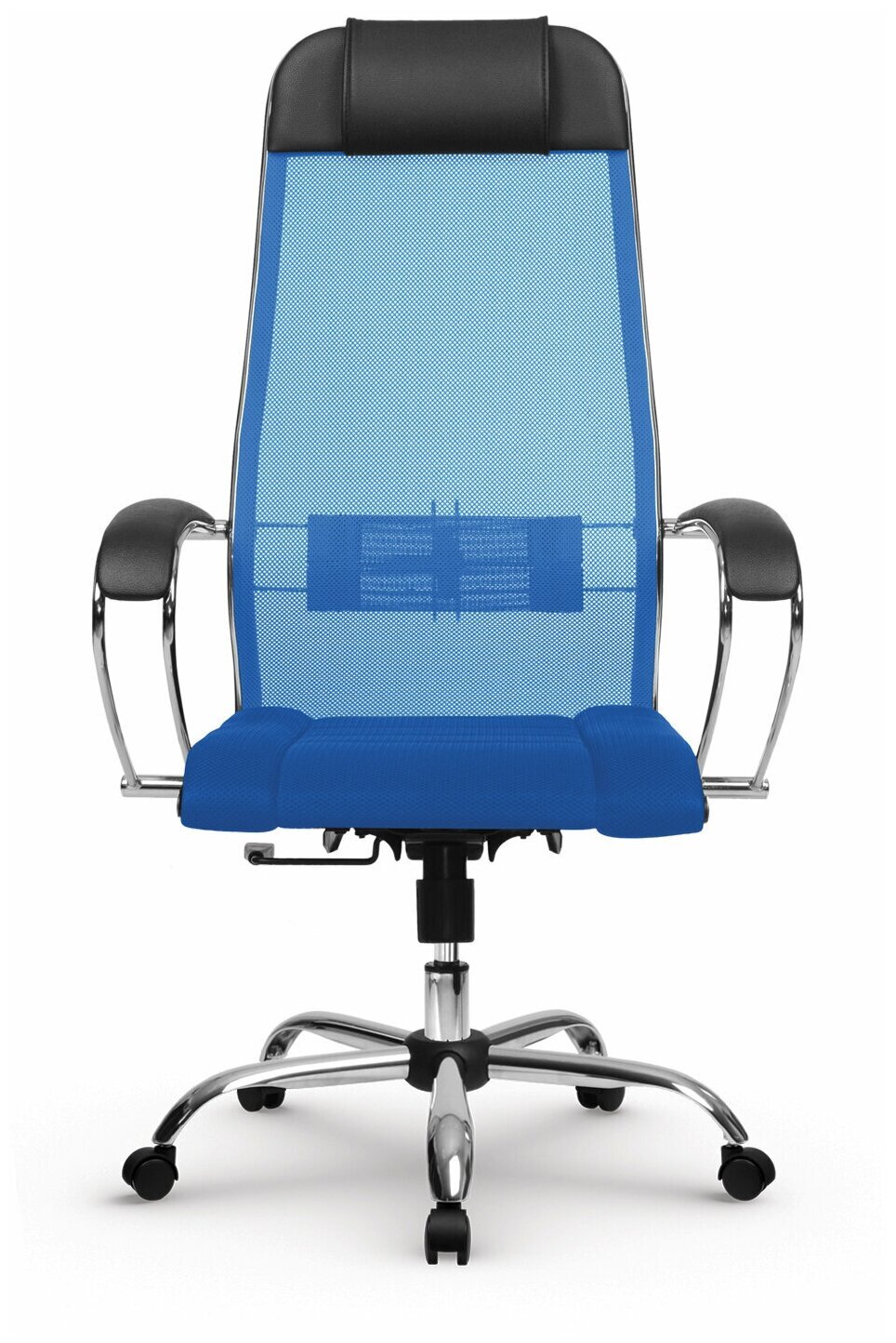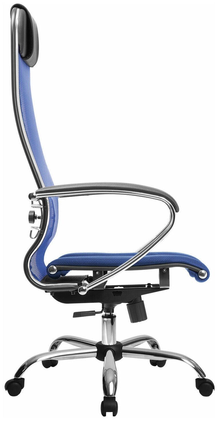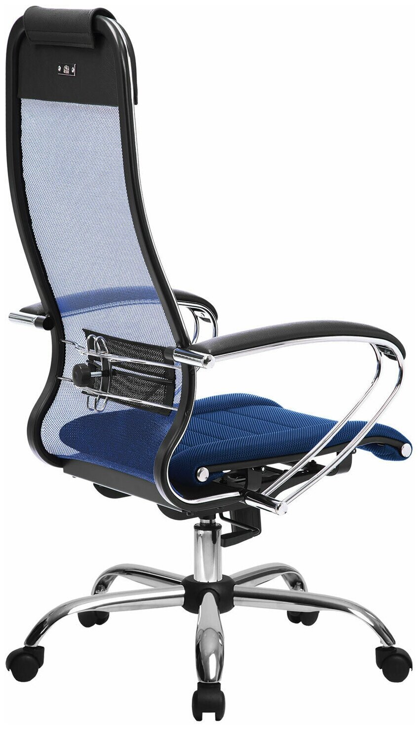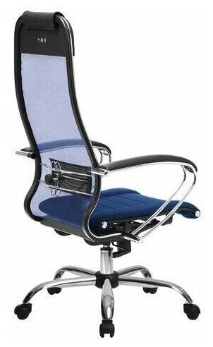 Кресло офисное МЕТТА "К-3" хром, ткань-сетка, сиденье и спинка регулируемые, синее