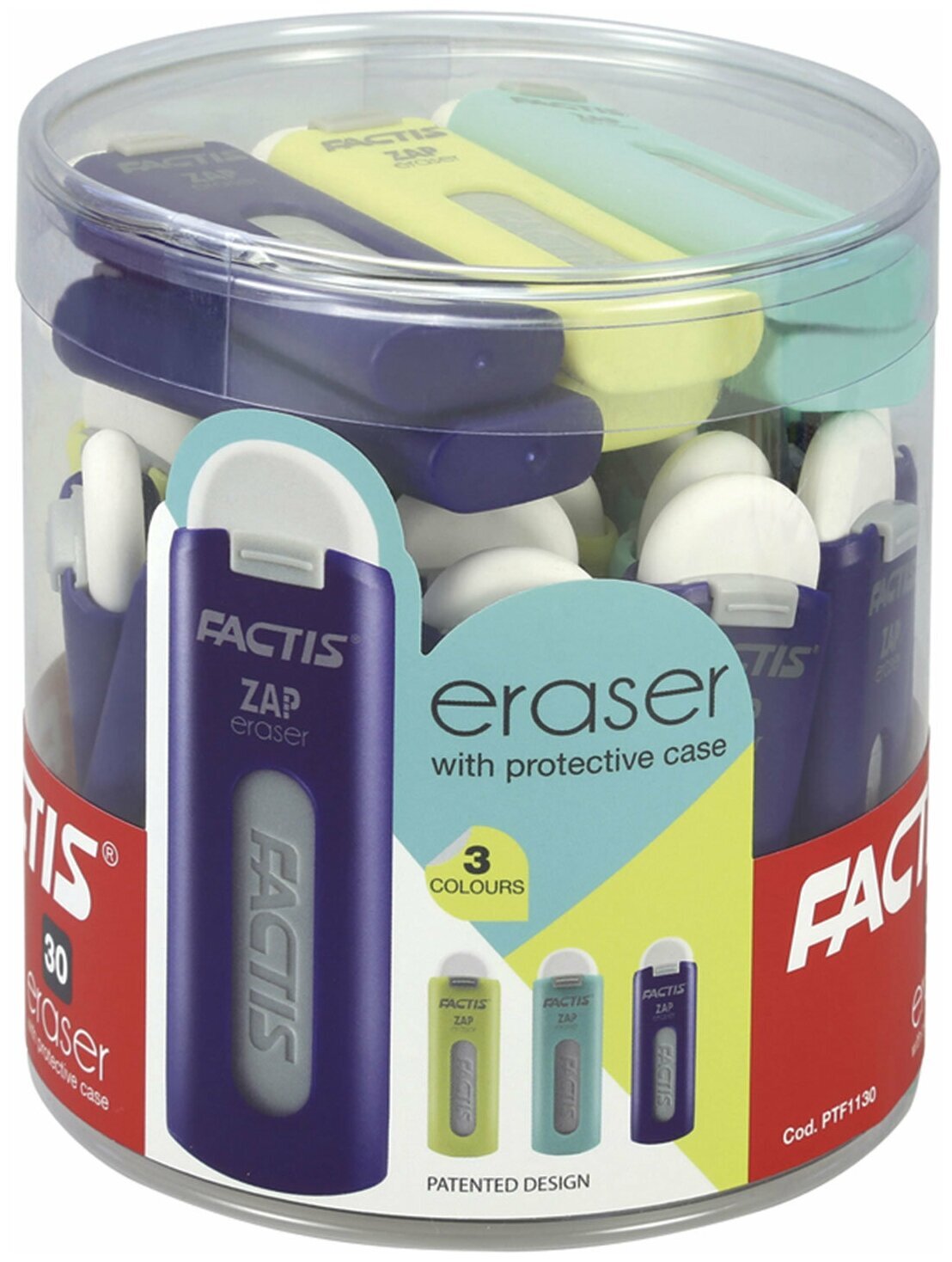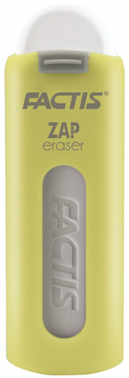 Ластик бренда FACTIS, произведенный в Испании, отлично подходит для удаления надписей, сделанных чернографитным карандашом со всех видов поверхностей.Выдвижной ластик ZAP поставляется в пластиковом корпусе цветов ассорти. Механизм позволяет выдвигать и задвигать резинку. Размер - 75х7х8 мм.