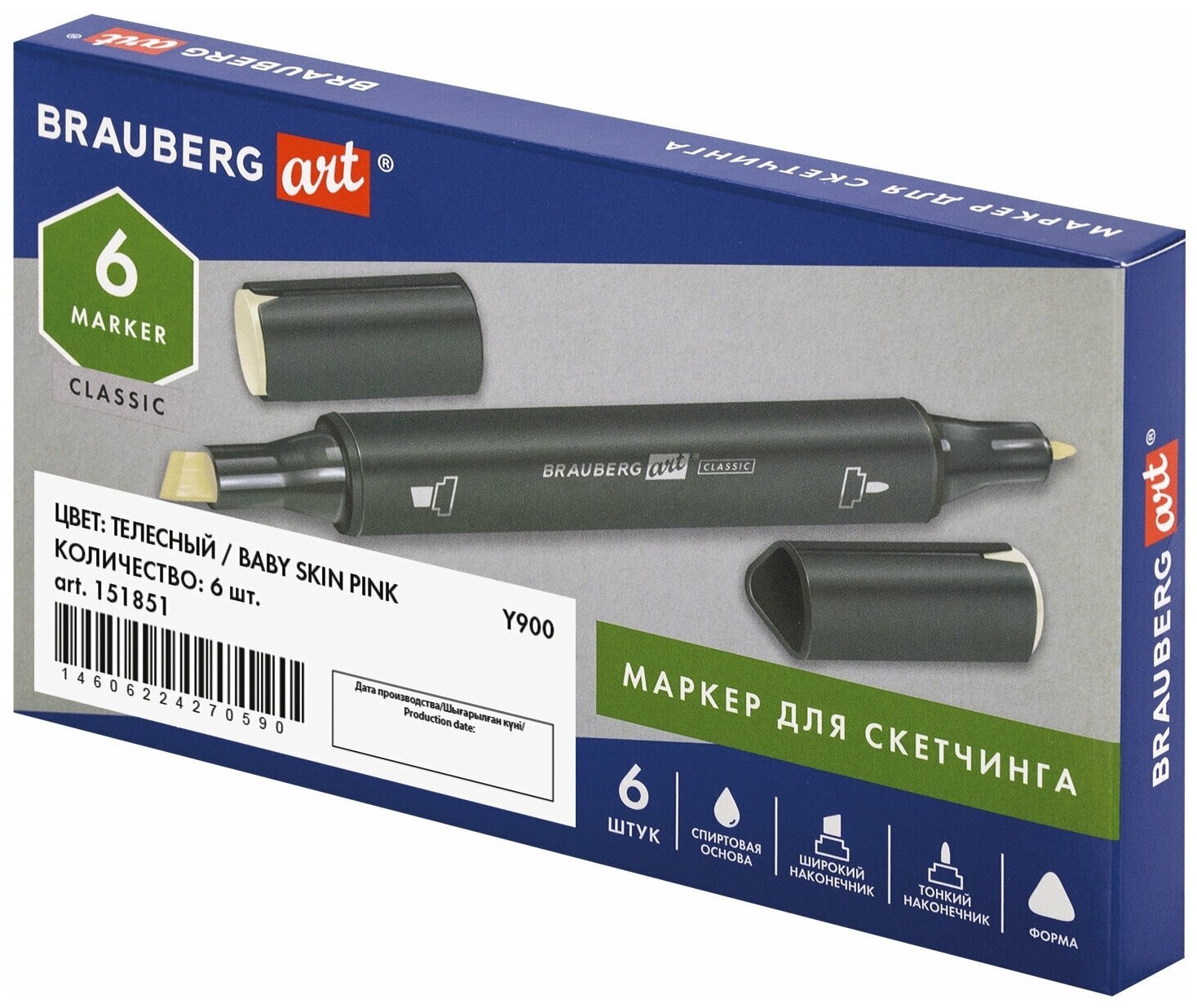 Маркер для скетчинга BRAUBERG ART "CLASSIC" для повседневного использования. Маркер для скетчинга и рисования подходит для использования на бумаге.Двусторонний маркер для скетчинга с треугольной формой корпуса из пластика, диаметр которого 15 мм. Форма наконечника - тонкий и скошенный. Цвет - телесный. Толщина линии письма - 1-6 мм в зависимости от наконечника. Особая основа маркера обеспечивает такие качества, как стойкость к воздействию воды, ультрафиолету, низких и высоких температур. Благодаря спиртовой основе чернила быстро сохнут и не размазываются. Износостойкий фетровый наконечник устойчив к повреждениям и обеспечивает экономный расход чернил. Изделие не перезаправляется. Плотно закрывается колпачком, что предотвращает высыхание наконечника и чернил. Цвет колпачка соответствует цвету чернил.
