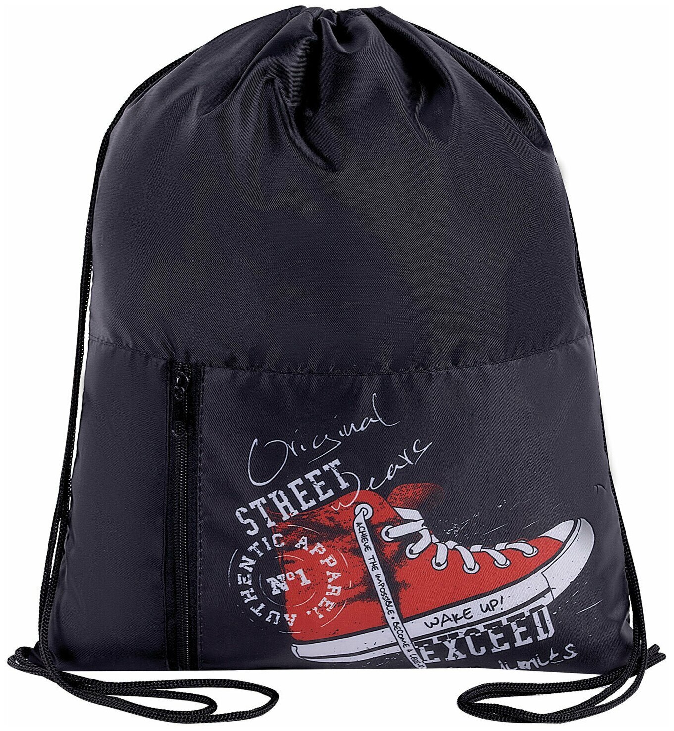 Мешок для обуви ЮНЛАНДИЯ "Original wears" - необходимый аксессуар в школе. Подходит как для обуви, так и для физкультурной формы и сменной одежды для факультативных занятий. Затягивается двумя шнурками. Можно носить на плечах за спиной.Выполнен из плотного полиэстера с водоотталкивающей пропиткой. Мешок оснащен дополнительным карманом на молнии. Яркая печать дизайна на кармане.