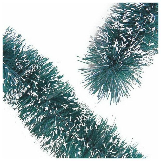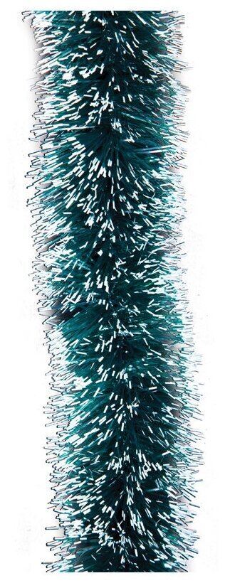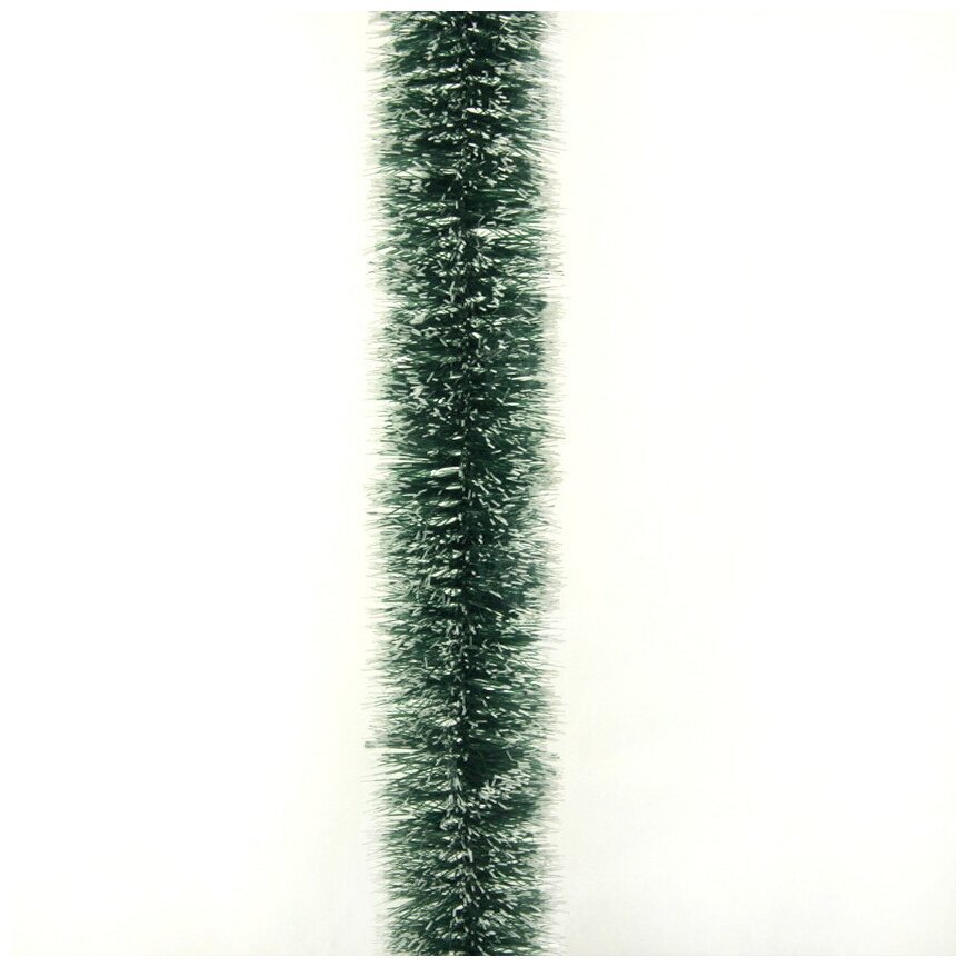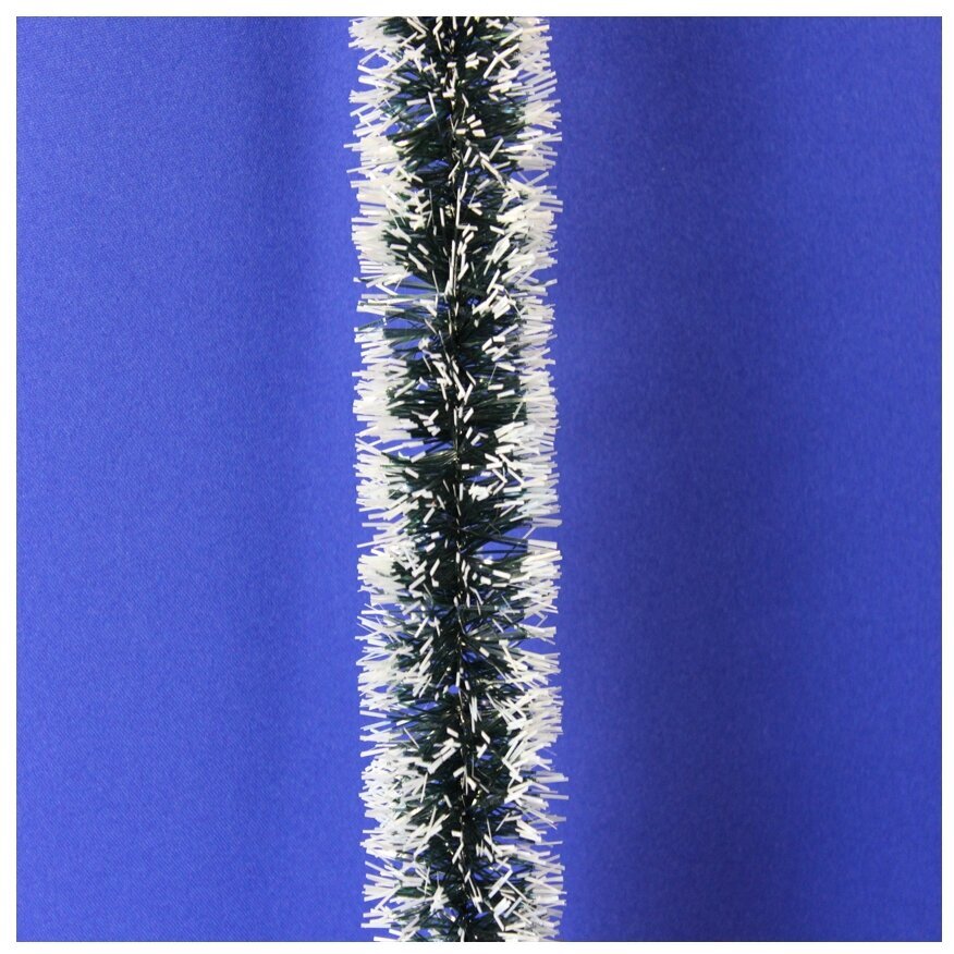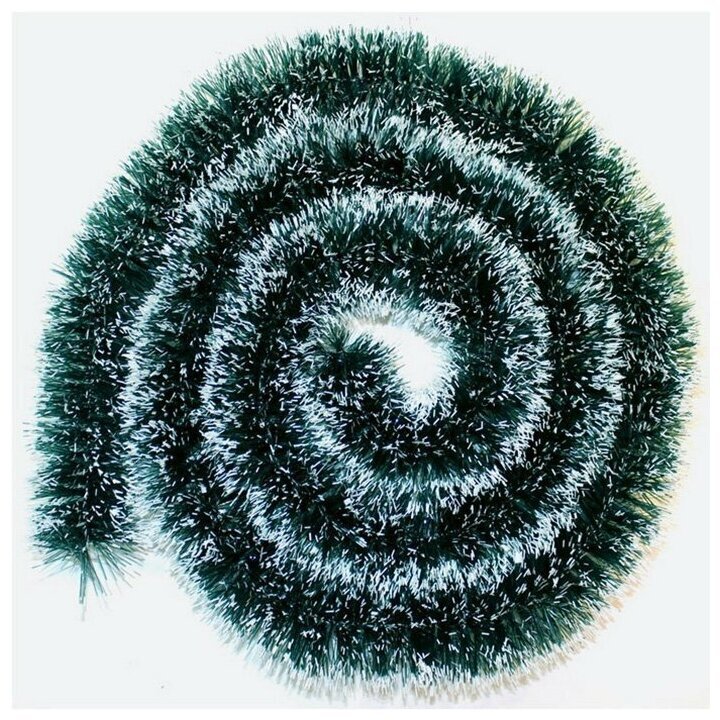 Мишура, 1 штука, диаметр 70 мм, длина 2 м, зеленая с белыми кончиками, 73752