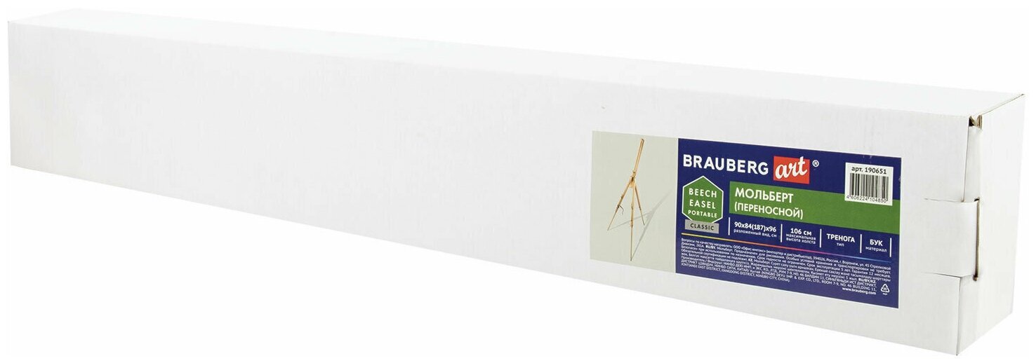 Мольберт BRAUBERG ART "CLASSIC" Предназначен для учеников и студентов художественных школ, художников. Идеально подойдет для написания этюдов вне мастерской.Изготовлен из натурального бука, пропитанного маслом. Мольберт полевой прост в установке, верхнее крепление обеспечивает жесткую фиксацию холста. Максимальная высота размещаемого холста - 106 см. Мачта неподвижная с фиксированным углом наклона.