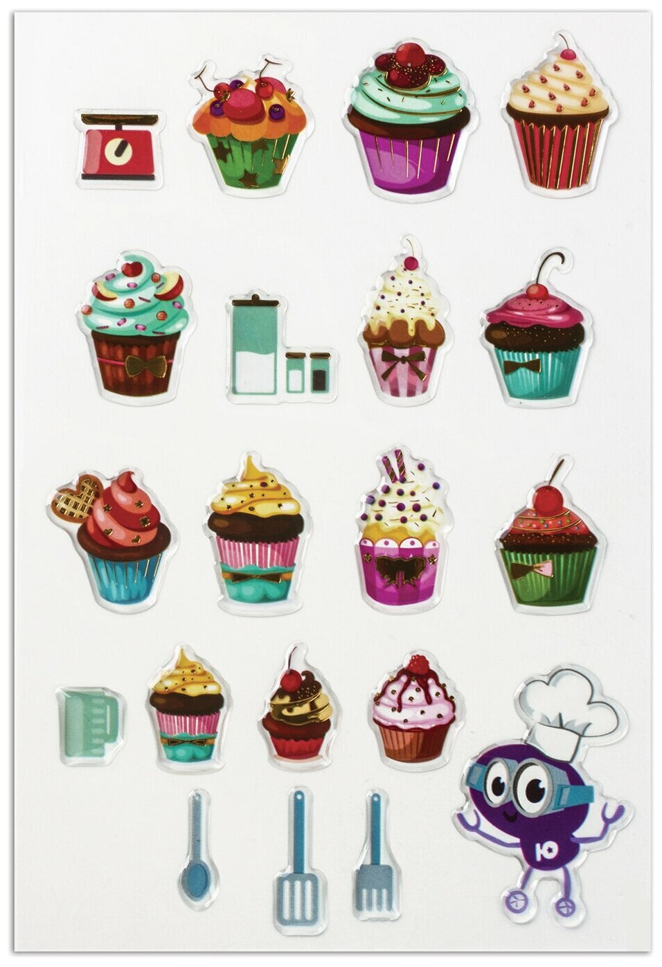Гелевые наклейки ЮНЛАНДИЯ - это простой и яркий способ украсить любые изделия. Многоразовые наклейки подходят для использования на бумаге, картоне, дереве, пластике, стекле и других поверхностях несколько раз, не оставляя следов.В наборе содержатся гелевые наклейки, украшенные фольгой, с изображением разных сладостей в количестве 20 штук. Наклейки отличаются высочайшим качеством печати и цветопередачи. Аппетитные тортики и пироженки украсят тетради, дневники, гаджеты и любые поделки.